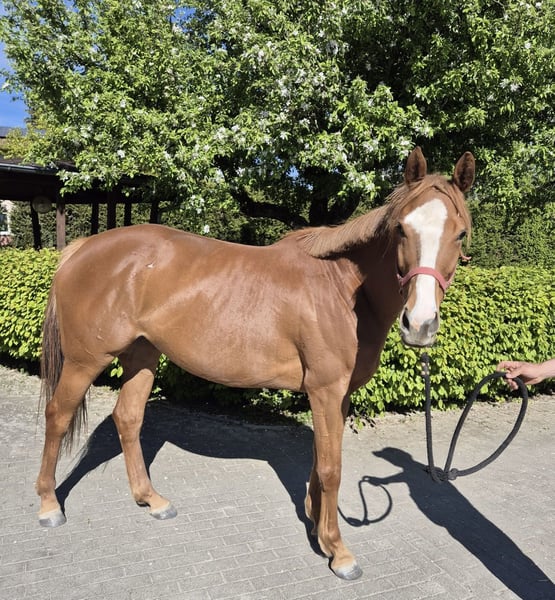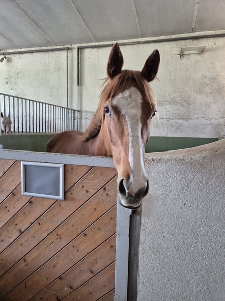 Gianetta eine 4-jährige Vollblutstute mit viel Herz, Charm und Charakter sucht nach Beendigung ihrer Rennkarriere einen neuen Aufgabenbereich als Reitpferd. Hufschmied, Anhänger fahren etc. kein Problem. Standort: Gestüt Berwangerhof