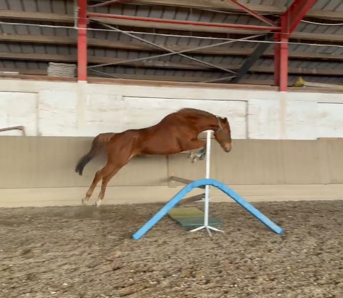 Zum Verkauf steht eine 5-jährige Vollblut Stute mit einem Stockmaß von ca. 164 cm. Diese sympathische , menschenbezogene Dame überzeugt besonders durch ihren grundehrlichen Charakter und ihr außergewöhnlich starkes Nervenkostüm. Sie zeigt sich selbst in neuen Situationen immer gelassen, aufmerksam und stets kooperativ – Eigenschaften, die sie zu einem idealen Partner für die weitere Ausbildung machen. Die Stute war nie auf der Rennbahn (wurde auch nicht für den Rennsport trainiert), kam im Sommer 2025 direkt von der Aufzuchtskoppel zu mir, wurde solide vom Boden aus gearbeitet und schonend angeritten. Sie präsentiert sich unter dem Sattel angenehm zu reiten, mit schönen Grundgangarten. Sie ist hier äußerst brav, will immer gefallen und verzeiht auch reiterliche Fehler. Sie wird momentan von mir und einer professionellen Bereiterin geritten. Beim Freispringen zeigt sie sich geschickt und motiviert. Aufgrund ihrer Veranlagung kann ich sie mir sehr gut in der Vielseitigkeit vorstellen, wo sie, wenn man Sie weiter fördert, ihr Potenzial optimal entfalten kann. Auch als Familienpferd macht sie sicher einen super Job! Auf einen Blick: • 5 Jahre alt • Englisches Vollblut • ca. 164 cm Stockmaß • angeritten • sehr ehrlicher, klarer Charakter • nervenstark und ausgeglichen • Gesund • Schmiede- und Verladefromm (kann alleine verladen werden) Sie ist brav im Umgang und zeigt sich im täglichen Handling unkompliziert. Kennt Herdenhaltung, sowie Paddockboxen. Sie ist geimpft, entwurmt und hat im Oktober 2025 die Zähne gemacht bekommen. Die Stute wird nur in fördernde und wertschätzende Hände abgegeben. Preis: VHB Standort: Mannheim Bei ernsthaftem Interesse freue ich mich über eine Nachricht!