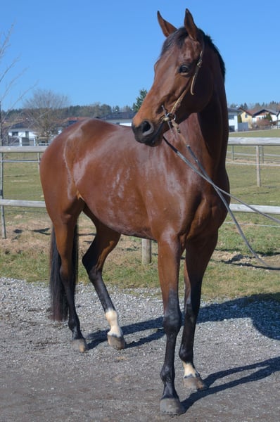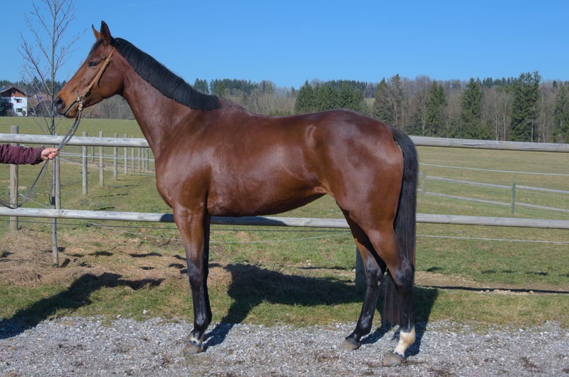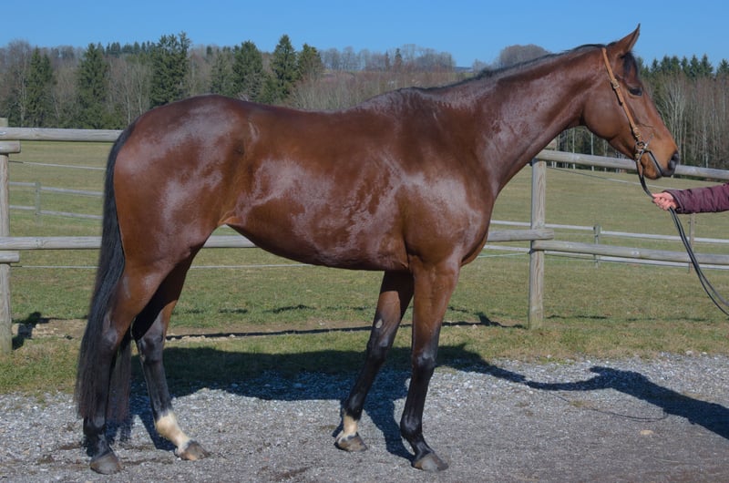 Exklusive Nachwuchsstute mit Perspektive – Laurentia (5 Jahre) Zum Verkauf steht die elegante und ausdrucksstarke Englische Vollblutstute Laurentia, eine 5-jährige Nachwuchsstute mit sportlicher Perspektive. Laurentia stammt aus leistungsgeprägter Vollblutabstammung: Vater Guiliani (IRE), Muttervater Maxios (GB). Sie stand nie im Renntraining und wurde erst vierjährig schonend angeritten, wodurch sie sich körperlich und mental optimal entwickeln konnte. Die Stute präsentiert sich mit athletischem Körperbau, klarer Linienführung und guten, elastischen Grundgangarten. Ihr Bewegungsablauf zeigt natürliche Balance, Elastizität und Raumgriff, verbunden mit einem wachen, arbeitsfreudigen Charakter. Ausbildung Laurentia wurde nach den Prinzipien der altklassischen Reitkunst aufgebaut und mit besonderem Augenmerk auf Gymnastizierung, Losgelassenheit und Tragkraftentwicklung gearbeitet. Aktueller Ausbildungsstand: sicher in Schritt, Trab und Galopp unter dem Reiter Seitengänge im Schritt, erste Ansätze der Seitengänge im Trab regelmäßige Handarbeit und Longenarbeit, wodurch sie Beweglichkeit und Körpergefühl entwickelt hat. War auch schon im Gelände unterwegs. Durch diese sorgfältige Ausbildung verfügt sie bereits über eine solide gymnastische Grundlage. Perspektive Aufgrund ihres Leichtbaus, ihrer Ausdauerveranlagung und ihres klaren Kopfes sehen wir Laurentia besonders interessant für: Distanzsport Vielseitigkeit ambitionierte Freizeitreiter mit sportlichen Zielen Charakter Laurentia vereint einen starken, sicheren Charakter mit einem sanften und menschenbezogenen Wesen. Sie ist arbeitswillig, aufmerksam und fein in der Kommunikation, weshalb sie einen klaren und erfahrenen Reiter benötigt. Daher nicht für Anfänger geeignet, sondern ideal für Reiter, die Freude daran haben, ein talentiertes Jungpferd weiter zu fördern. Unser Wunschplatz Laurentia wurde mit viel Zeit, Geduld und Fachkenntnis aufgebaut und konnte sich dadurch gesund und korrekt entwickeln. Wir wünschen uns daher einen wertschätzenden Platz, an dem sie weiter angepasst ausgebildet wird. Ein persönliches Kennenlernen sowie Probereiten ist nach Terminvereinbarung selbstverständlich möglich. Uns liegt besonders am Herzen, einen Besitzer oder eine Besitzerin zu finden, der/die Qualität, Zeit und eine fundierte Ausbildung eines jungen Pferdes zu schätzen weiß. Über einen weiteren Kontakt und Einblicke in ihre zukünftige Entwicklung würden wir uns sehr freuen.