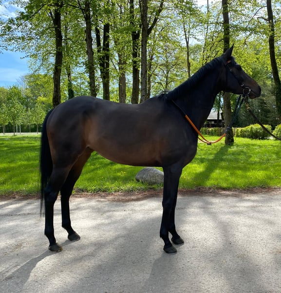 Elegant Thoroughbred Mare for Sale For sale is a beautiful, black-brown Thoroughbred mare, born in 2020. Standing at 16.1 hh, her friendly and trainable nature makes her well-suited for breeding purposes. The horse is healthy, regularly vaccinated, and has been lovingly raised. She is a barefoot mare and ranks low in the herd hierarchy. She is not a high-speed runner and is very easy to handle both under saddle and when being trimmed by the farrier. She adapts very well to pasture living.