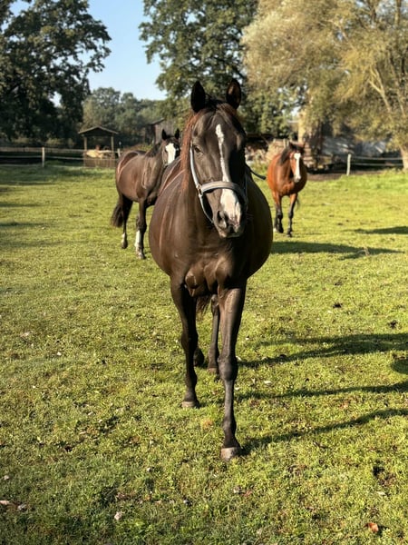 Klacz jest niezajeżdżona. Podaje nogi, była wiązana i chodzi na uwiązie. Nie jeździła w przyczepie. Gaba to koń spokojny i zrównoważony, wychowywana na pastwisku w dużym stadzie. Jest bezproblemowa w stosunku do innych koni. Dobra matka. Była mierzona - 148,5 cm Możliwa sprzedaż z jej źrebakiem z 2025. Klaczka urodzona kwiecień 2025 Duży kuc, wzrost docelowy 146/8 cm Matka pełnej krwii angielskiej to córka ogiera Nowogródek, od matki po Jape. Ojcem jest Crème Couleur - potomek medalisty Mistrzostw Europy. Klaczka wychowana na wolnym wybiegu. Poprawnie zbudowana, dobrze ruszająca się.