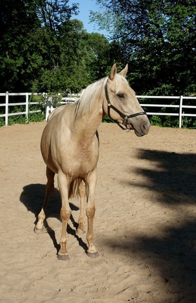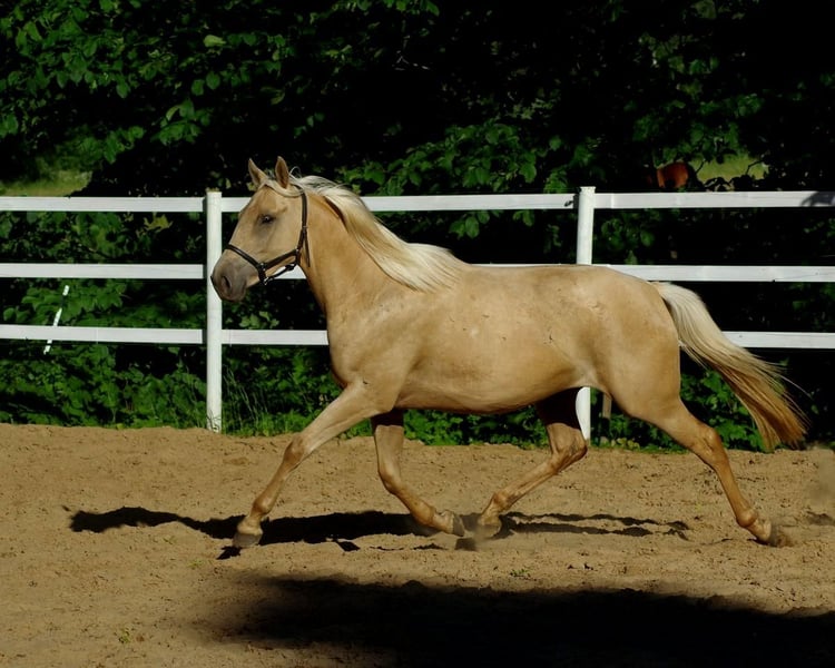 Gaira xx ist eine schöne kleine Palomino-Vollblutstute direkt vom Züchter. Geboren 2019, 160 cm. Eingetragen im Zuchtbuch der "Estonian Sporthorse Society", die Mitglied der WBFSH ist. Sie hat eine lange Kindheit beim Züchter verbracht und wurde noch nicht geritten. Sie wird im Spring angeritten, bei Kauf vorher gilt ein Sonderpreis für ein "ungeschliffenes Juwel". Sie ist kein Anfängerpferd, da sie empfindsam ist – aber niemals böse. Der Vollbruder ist bereits ein hervorragendes Reitpferd (auf dem letzten Foto zu sehen). Sie ist ein korrektes, gesundes Pferd mit guten Bewegungen – es wurden makellose Röntgenaufnahmen von Beinen und Rücken gemacht. Sie wäre auch eine schöne Zuchtstute – mit ihrer Vollblutabstammung können Sie ihre zukünftigen (möglicherweise Palomino!) Fohlen in den meisten Sportpferde-Zuchtbüchern anerkennen lassen. Steht in Estland, direkt vom Züchter- kann problemlos nach Deutschland gebracht werden, das ist ein Routine für uns. Kostet etwa 500-800 EUR. anneli.kadakas@gmail.com https://www.facebook.com/reinu.talu
