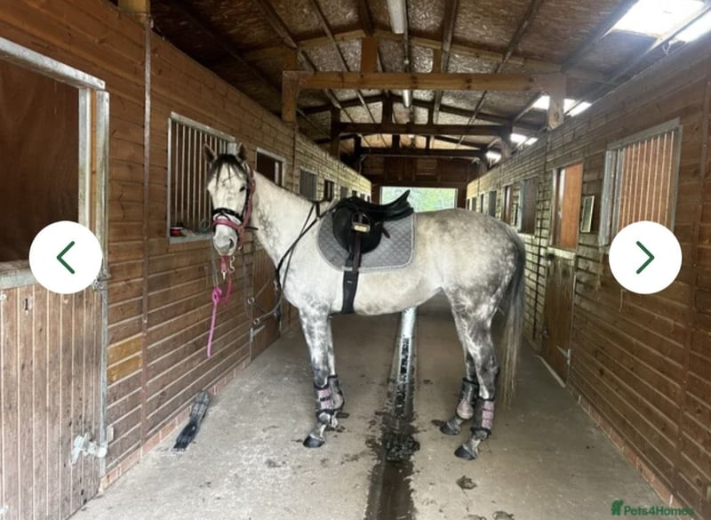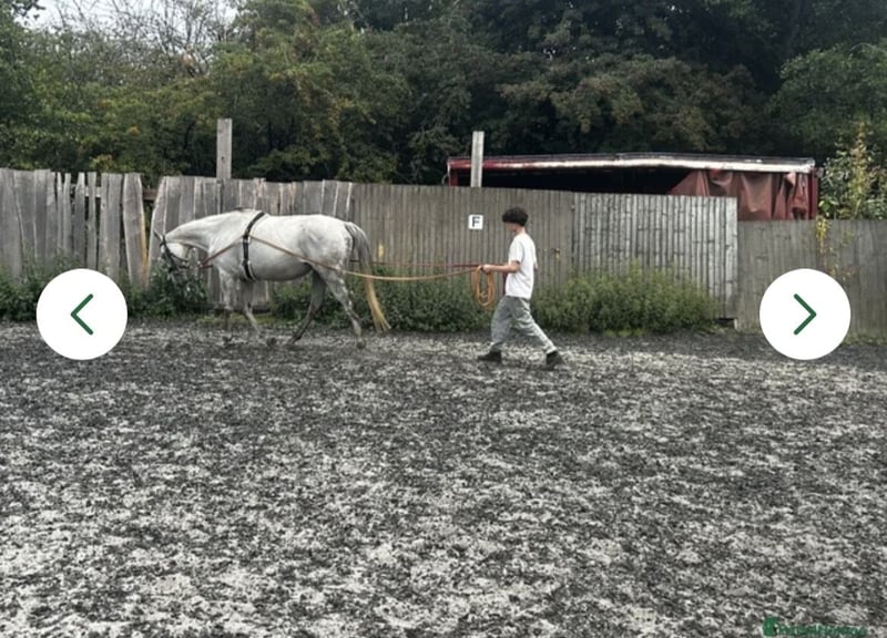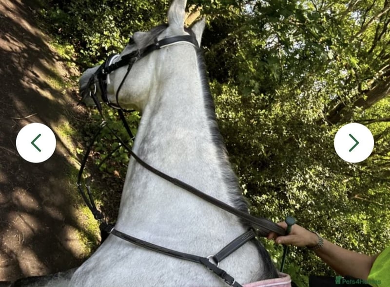 Beautiful grey mare, 15.2hh, 7 Yo, TB K is now a 7 year old mare, with fantastic breeding by the sire Mastercraftsman who was a who was a champion 2yo; won National & Phoenix Stakes; won two Group 1’s at 3, inc Irish Guineas; quality sire and out of the mare Kebaya who is by sire Montjeu. Sire: Mastercraftsman (IRE) Dam: Kebaya (Montjeu) (IRE) She’s a Very sensitive, sweet girl, been in light work , was in full time work 8 months ago, needs re schooling due to my lack of time. Can be ridden/ long reined/ schooled - slighty green. She would be a CRACKING dressage horse! hacking/ schooling , she CANNOT jump due to a previous tendon injury she got when racing 2.5 yrs ago. Fully healed but obviously a weak spot so no to jumping. Or Would make fantastic babies 🤩 She doesn’t kick/ bite or act up, she’s typical mate pulls faces. It never does anything, she’s does weave, I’ve tried every thing to help her with this but it’s just who she is, she’s not stressed with it just habit. I just don’t have the time she’s waisted with me, really gutted but she deserves better than being a pet. Quick sale needed , need the space