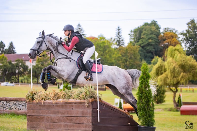 Ich biete meine liebe Stute zum Verkauf an. Sie hatte eine sehr erfolgreiche Rennkarriere und gewann die Slowakischen Oaks und wäre eine gute Zuchtstute. Sie ist seit ihrem 5. Lebensjahr im Vielseitigkeitssport aktiv und hat an den Finals einer großen Serie für junge Pferde hier, der „Soutěž nadějí“, teilgenommen. Sie hat Wettkampferfahrung bis zur Klasse 1* Vielseitigkeit und 115 cm Springen. Im Training hat sie keine Probleme mit 2* Vielseitigkeit und 130 cm Springen. Sie hat das Potenzial, sich weiterzuentwickeln. :) Sie liebt Menschen und Kinder, mein 4-jähriger Bruder kann sie ohne Sattel und ohne Gebiss reiten. Sie war früher in einer Reitschule, daher ist sie auch für Anfänger geeignet. Sie ist eine Cross-Country-Maschine und springt alles von überall. In diesem Jahr hat sie mit mir an der nationalen Meisterschaft teilgenommen und den 5. Platz in der großen Serie „Bronzová Podkova“ belegt. 2025 war sie mit mir im „SCM“, einem Ausbildungsprogramm für die besten Junioren des Landes, und hat auch die Qualifikation für das diesjährige SCM. Sie ist gesund, Röntgenbilder sind verfügbar. :)
