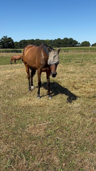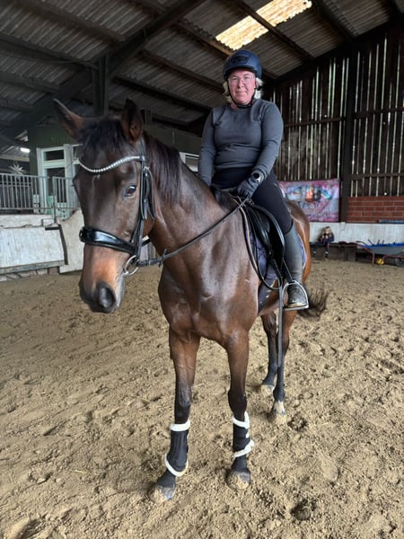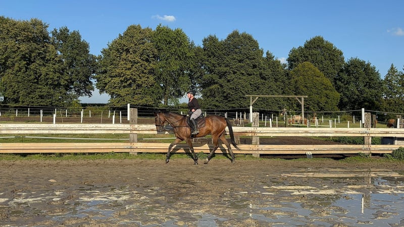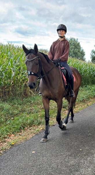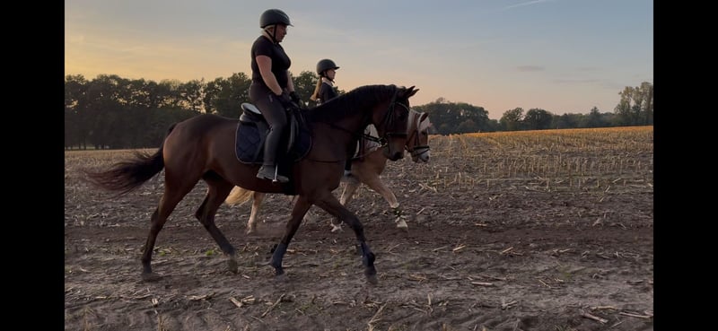 Hello, It is with a heavy heart that I am selling my Thoroughbred mare. She is 8 years old and was started very gently and patiently at the age of 3; she has never raced, as is typical for Thoroughbreds! She is versatile and well-suited for various disciplines, very friendly, and always eager to please her rider. She is familiar with all three gaits and executes them confidently. Please note, she is not suitable for beginners. Good aids and a gentle hand are essential when riding her. I could write much more, but I’d be happy to share additional details with serious interest... Videos are also available. Feel free to contact me if you're interested!