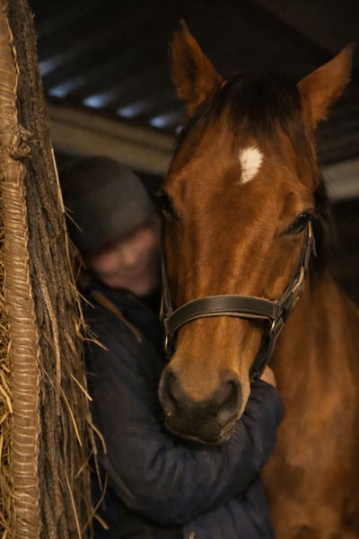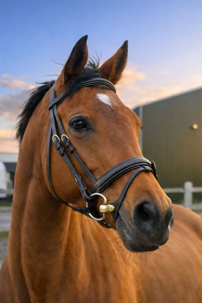 Interieur (carattere) Una femmina mare con personalità ben definita e limiti chiari. In stalla non è una compagnona di tutti; bisogna prima conoscerla e potrebbe reagire in modo distaccato o severo con persone sconosciute. Con persone affidabili è molto gestibile. In lavoro, invece, si dimostra estremamente volenterosa e collaborativa; si adatta facilmente all’allenamento al longe. Richiede molto movimento, regolarità e un conduttore esperto e deciso. Esterno (costruzione, segni distintivi) Purosangue inglese (xx) con sangue evidente e conformazione atletica da sport. Zampe corrette, asciutte, e modo di muoversi leggero e aggraziato. Colore/segni distintivi: baio, segni / whorls (ciuffi): doppio ciuffo in alto sulla cresta del collo su entrambi i lati (doppio whorl nella parte superiore della cresta, entrambi i lati). Ciuffo piumato a metà trachea (feathered whorl mid trachea). Inoltre, su entrambe le ascelle, un ciuffo (bilateral axillae whorl). Testa: doppio ciuffo centrale sopra l’altezza degli occhi (double whorl about median above eye level). A destra, un ciuffo all’interno di una piccola stella (right whorl contained within a small star). Colore/altri segni visibili: piccola macchia bianca sopra gli occhi. Altre caratteristiche Molto tranquilla in trailer; caricare e trasportare senza problemi. Facile da addestrare al lavoro al longe e a terra. Tipo in forma e energico, che beneficia di movimento quotidiano e routine stabile. Particolarità del cavallo Ex cavallo da corsa. A 2 anni ha subito una lesione al ginocchio durante il periodo di corse; trattata e successivamente ha corso e piazzato di nuovo da 4 anni. Non è stato addestrato sotto sella, ma ha fatto lavoro a terra — necessita di riprendere l’allenamento sotto sella. Offerta come fattrice con pedigree internazionale forte. Ascendenza: Holy Roman Emperor (Danehill x L’On Vite) x Rusookh (Nayef x Thamarat by Anabaa).