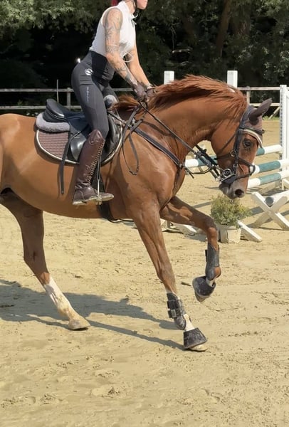 I am offering my 8-year-old, 165 cm tall Thoroughbred mare, Shiva, for sale. She will turn 9 in May. Last year, I took over Shiva in very poor condition, but since then, quite a bit has been done. We have managed to improve her hooves as much as possible without shoes, had her teeth checked and treated, and she receives regular osteopathic care. We’ve also learned a lot together. I originally bought Shiva from a breeder, and she was lightly backed shortly after. At that time, she only knew riders from the racetrack. Shiva has already foaled twice and is registered with the Trakehner Verband. After nearly a year and three months in my possession, I unfortunately realized that Shiva and I are not the perfect match. She is directly descended from Lord of England, and you can feel that 🙂. Her offspring are known for their strong character, and she definitely fits that description. She has a big heart but can sometimes be her own worst enemy emotionally. Shiva is shoe and loading familiar. She knows the terrain, indoor arena, and outdoor paddock. Last year, I jumped her in some A*-** star courses, but she tends to get excited when jumping, which can be difficult to manage. Therefore, I am hesitant to sell her as a jumping horse. I could see Shiva thriving with an endurance rider, trail rider, or even in hunting. She might also suit a dressage rider! She is very well-trained and has a lot of go, so she needs a calm rider. For a classic Thoroughbred, she moves very nicely and has an active hind end. She has always been very manageable and fearless away from home. However, Shiva needs a place to stay overnight, as she has become quite anxious in her open stable. We are currently working on improving this. I have never had her x-rayed or scanned, as she has never shown any issues under my care. Shiva has 1-2 minor “flaws,” which I am happy to discuss with serious interest. I will only sell Shiva to someone who has visited her 2-3 times for a trial ride. I want an honest conversation so that both parties can assess if she is the right fit. The trial ride fee is €30, which will be refunded upon purchase. Price is negotiable. Absolutely, priority goes to the well-being of the horse!