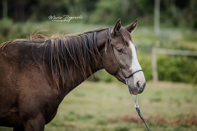Pur-sang anglais en Smoky Black (porteur de crème simple + porteur d'Overo) | né en 2022 | actuellement en croissance Pur-sang anglais Génétique : E/_ a/a Cr/n OWL/n STUNED AGAIN XX est un jeune étalon pur-sang avec une génétique de couleur rare et un caractère amical. Il se montre attentif, calme, intéressé et aime s'approcher des gens sans être envahissant. Dans l'ensemble, c'est un jeune étalon curieux et sans complications. Il grandit dans un groupe de jeunes étalons d'âges mélangés, connaît un contact régulier avec les humains et est familiarisé avec les routines de base du quotidien – y compris la conduite, le chargement, le pansage et les soins des sabots non ferrés. Père : T.C.F. Palladium xx – l'un des rares pur-sang smoky cream au monde, élevé au Canada (True Colours Farm), actif chez nous dans l'élevage de couleurs. Mère : Just Stunning xx – jument pur-sang anglais avec statut de porteur de dessin Overo (OWL/n)