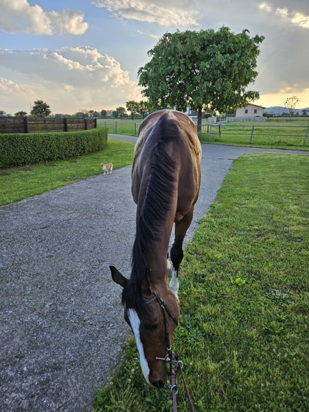 Horse for an experienced rider, suitable for fox hunting. Former show jumping competitor on the track.