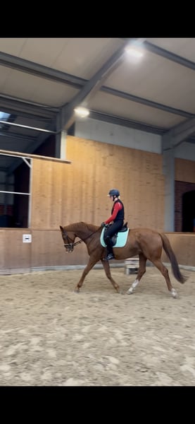 Zum Verkauf steht der 10-jährige englische Vollblutwallach „Recent Approach“ mit einem Stockmaß von ca. 1,67m. Der ausdrucksstarke Fuchs besticht durch seine Feinfühligkeit, Intelligenz und seine enge Beziehung zum Menschen. Recent Approach (Pilo) wurde überwiegend freizeitmäßig geritten und intensiv in der Bodenarbeit gearbeitet. Unter dem Sattel befindet er sich noch in weiterer Ausbildung und möchte behutsam gefördert werden. Er reagiert sehr fein auf Hilfen und braucht einen ruhigen, souveränen Reiter, der ihm Sicherheit vermittelt sich aber auch durchsetzen kann. Aufgrund seiner Sensibilität ist er kein Anfängerpferd. In einem konstanten, verständnisvollen Umfeld zeigt er sich freundlich, lernwillig, kooperativ und stets motiviert. Besonders geeignet ist er für Menschen, die Freude an feiner Kommunikation, Bodenarbeit und der gemeinsamen Weiterentwicklung haben. Pilo wurde frisch osteopathisch behandelt und wird behutsam weiter aufgebaut. Wir wünschen uns für ihn ein liebevolles Zuhause bei einem erfahrenen Pferdemenschen, der auf seine Bedürfnisse eingeht und ihn ruhig und konsequent weiter fördert.