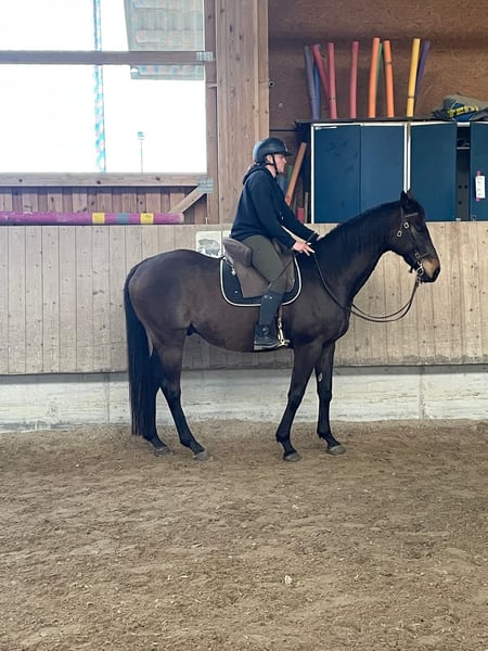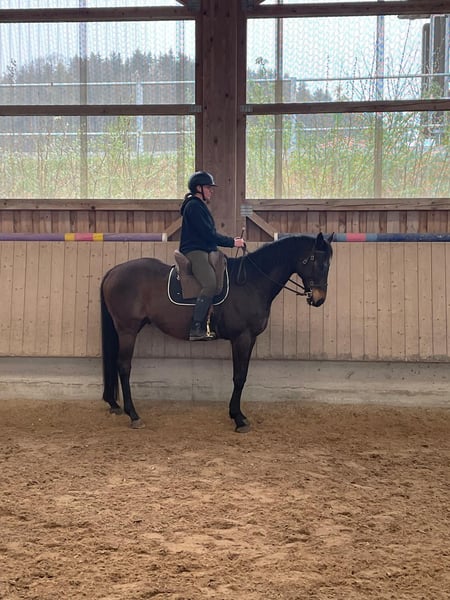Famous a couru jusqu'à l'âge de 7 ans dans les courses de galop. Il a eu la chance d'être dans un très bon écurie d'entraînement où chaque cheval est pris en considération. Lorsque sa carrière sportive a pris fin, nos chemins se sont croisés. Au cours des dernières années, il a pu profiter de sa vie dans un troupeau mixte en pension en plein air en Tyrol. Dans le troupeau, il est très sociable. En raison d'un manque de temps, il n'a été monté que sporadiquement. Il maîtrise toutes les allures, ainsi que tous les mouvements latéraux au pas et au trot. Nous avons également commencé à travailler sur la piaffe. Famous a une énergie agréable sous la selle et ne perd jamais son calme. Il est possible de le rencontrer et de l'essayer à tout moment sur rendez-vous. N'hésitez pas à faire la connaissance de Famous, si tout se passe bien, le prix est absolument négociable.