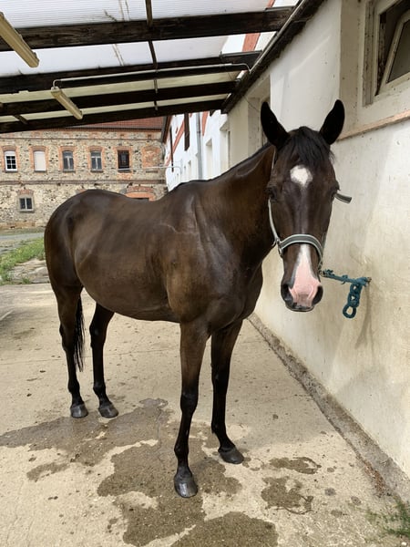 With a heavy heart, I am seeking a 5-star home for my gelding! Novateur is an Irish Thoroughbred gelding who is eager to please and suitable for various activities. He has no vices such as bucking or rearing, making him suitable even for novice riders with horse experience. In the arena, he can be a bit unsure when ridden alone, but is manageable, and he is brave and confident when accompanied by a second horse. Due to minor health issues, Novateur is no longer suitable for competitive sport and is being offered solely as a leisure horse. In previous years, he has been successful in E and A dressage classes. Currently, he is stabled at night, which I would like to continue. This is not an urgent sale! He is only being offered due to lack of time, with a sales contract. Novateur deserves to receive full attention again. Accessories can be included.