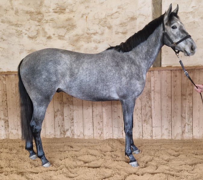 Amalio (sired by Appolline out of Fearless King) is a 3-year-old young horse with great potential in training. He impresses with his excellent temperament and strong will. Currently, he is being ridden in the arena and lunged. Naturally, he is familiar with the basics of racehorses and all that comes with it. We are looking to reduce our horse herd slightly and are now seeking a quality training environment for this young gentleman. He would make a good prospect either as a racehorse or in eventing. He still has a lot to learn, but with patience and calmness, this will certainly not be an issue. If you're interested, please feel free to contact us. Phone: 01604385767