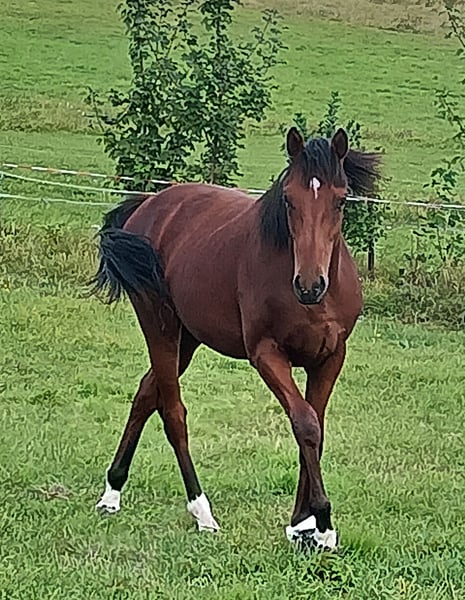 This 2-year-old gelding by Best Solution out of Rustica is confident and spirited. Due to the intentionally delayed castration, which took place in October 2025, he is developmentally above average for his age. His compact build, pronounced musculature, and ambitious gallop already impressed as a yearling, and his pedigree from some of the most successful stallions in thoroughbred breeding was evident even then. His sire, Best Solution, is known for passing on his quality, with his grandsire being the internationally successful stallion Kodiak. Offspring of Best Solution have demonstrated their class through their victories and are highly sought after at auctions. The 2-year-old is currently undergoing pre-training at Schloss Arrff and will begin formal training afterward. The main photo shows the gelding at Schloss Arrff in October 2025. The following image was taken in September 2025 at his home pasture, alongside his successful 8-year-old "brother," Red Storm (by Kamsin out of Rustica). The last photo, from September 2024, shows the gelding as a yearling, already making a strong impression. Further details can gladly be discussed in an initial phone call.