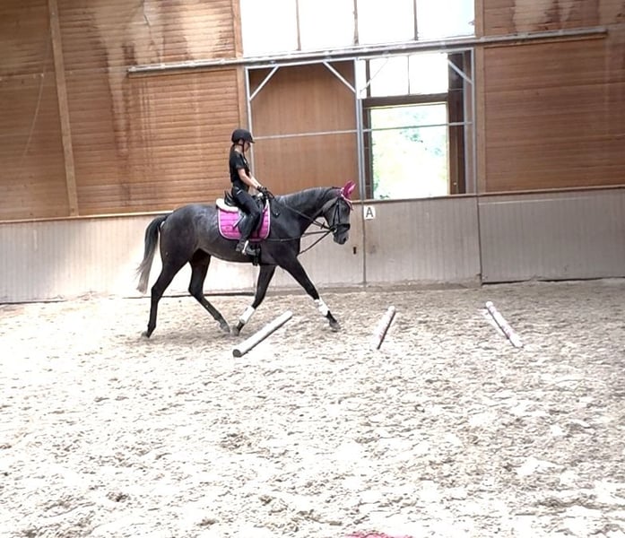 Absolutes Traumpferd zu verkaufen! Zum Verkauf steht hier das wohl liebenswerteste und freundlichste Pferd auf Erden. Do it in Paris ist ein 5 jähriger Vollblut Wallach mit einem aktuell stolzen Stockmaß von 1,69m. Sein Charakter ist einfach zu beschreiben LIEB! Er macht wirklich alles mit und hinterfragt nicht. Seit dem er 2 jährig ist befindet er sich bei uns im Stall. Paris war schon immer der absolute Liebling und hat noch nie einen falschen Schritt gemacht. Leider ist er für die Rennbahn zu langsam. Dafür springt er unfassbar toll! Er wurde für Hindernisrennen vorbereitet und ist daher ein absolut sicherer Springer. Er springt wirklich alles und verweigert nie! Daher sehen wir ihn absolut in der Vielseitigkeit. Seine GGA sind auch sehr ansprechend und er macht auch unter dem Dressursattel eine tolle Figur. Seit ca 6 Monaten wird er „umgeschult und hierbei auch von unsere 11 jährigen Tochter mit geritten. Paris kennt Reithalle, Reitplatz, Longe, bunte Stangen und Gelände. Im Gelände geht er in der Gruppe, so wie alleine und ist absolut unerschrocken. Unter dem Sattel lernt er gerade die Basics wie Schritt Trab Galopp Übergänge, Hufschlagfiguren, Schenkelweichen und aussitzen. Er bietet sich mittlerweile toll an und lernt wirklich jeden Tag dazu. Mit unserer Tochter läuft er brav mit Dreieckszügeln und ist sehr vorsichtig. Einzige Manko von unserem Schatz, er koppt. Wir wünschen uns für ihn ein Zuhause, in dem er sehr viel raus kommt, vllt sogar Offenstall, da er hauptsächlich in der Box koppt. Jetzt fragt mal sich, wieso wird dieses Traumpferd verkauft? Ganz einfach, wir haben zu viele Pferde. Es bricht uns wirklich das Herz, aber wir nehmen uns für jedes unserer Pferde viel Zeit und das ist ab einer gewissen Anzahl einfach nicht mehr möglich. Da wir aber keinen Stress beim Verkauf haben und die Zeit mit Paris derzeit sehr genießen und er einfach nur Spaß macht jeden Tag, geht er auch nur wenn das Zuhause perfekt ist. Paris steht im Rennstall und ist daher halbjährlich geimpft und vorne beschlagen. Absolut Verladefromm. Fährt LKW und Anhänger.