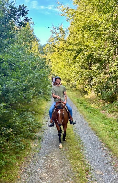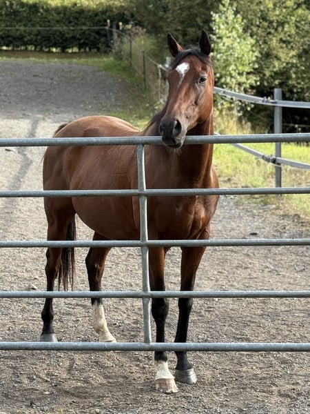 Te koop staat een 7-jarige volbloedhengst (Thoroughbred), ongeveer 1,58 m hoog, kastanjebruin. Afstamming: Elzaam x Oceania Queen Met volledige Weatherbys-papieren, DNA-gecontroleerde afstamming. Hij is rustig en zeer makkelijk in de omgang – voor een volbloed bijzonder ontspannen. Momenteel wordt hij ook gereden door mijn 8-jarige dochter. Onder het zadel toont hij zich ijverig, gemotiveerd en leergierig. Western-gericht basisopgeleid (onder begeleiding van een professional) en met een degelijke basis voor verdere training. - braaf in de omgang, geen ongewenst gedrag - vertrouwd met laden en transport - smederij- en dierenarts-geschikt - beschikt over hoefbeslag - geen wedstrijdervaring - geen renbaanervaring Een coole hengst met een goede instelling en potentieel voor recreatie of verdere opleiding. Verkoop ik met pijn in het hart wegens mijn gezondheid! Bij serieuze interesse graag een bericht.