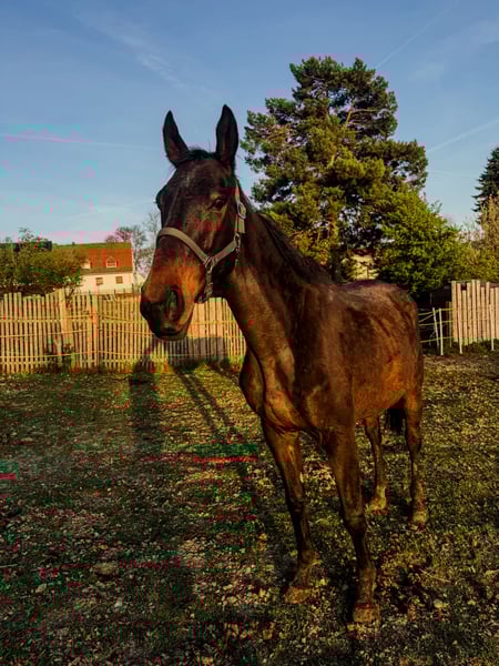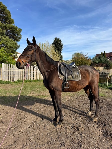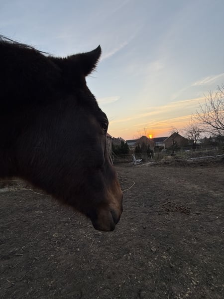 Joker jest 8-letnim ogierem pełnej krwi. Kiedy do nas trafił, był wyraźnie niedożywiony i w złym stanie ogólnym. W ciągu ostatnich 5 miesięcy bardzo się rozwinął, poprawił kondycję i jest teraz gotowy, aby ostrożnie wrócić do treningu. Obecnie Joker mieszka na padoku w grupie wyłącznie z wałachami, z dostępem do siana 24/7, i jest tam dobrze zintegrowany. Zna życie w stadzie i cieszy się dużą swobodą ruchu. W kontaktach jest wrażliwy i uważny. Nie lubi pośpiechu ani niepokojących ruchów, dlatego potrzebuje spokojnego, pewnego siebie opiekuna, który jasno pokaże mu kierunek. Jeśli coś mu się nie podoba, wyraźnie to komunikuje – to szczery charakter, który chce być zrozumiany. Posiada trzy dobre podstawowe chody, pełne energii i jakości ruchu. Rozpoczęliśmy pracę na lonży, w której Joker wykazuje motywację i zaczyna lepiej się nosić. Ważne informacje: Joker otrzymuje u nas alpejski siano. Możliwe, że odpowiednia dla niego byłaby stada klaczy, choć na chwilę obecną nie możemy tego jednoznacznie potwierdzić. Joker nie jest przeznaczony dla początkujących jeźdźców. Szuka doświadczonego, cierpliwego opiekuna, który chętnie będzie kontynuować jego szkolenie i zapewni mu poczucie bezpieczeństwa. W przypadku poważnego zainteresowania prosimy o wiadomość z krótkim opisem.