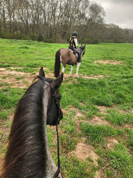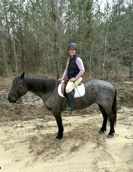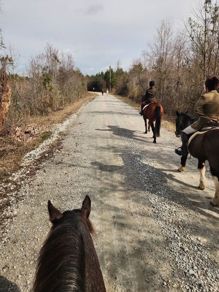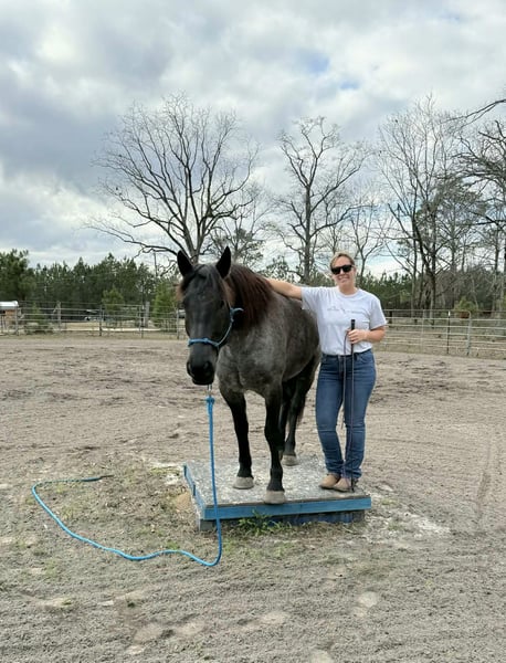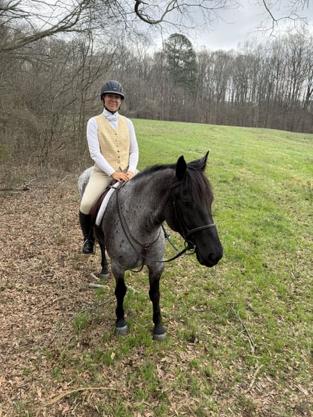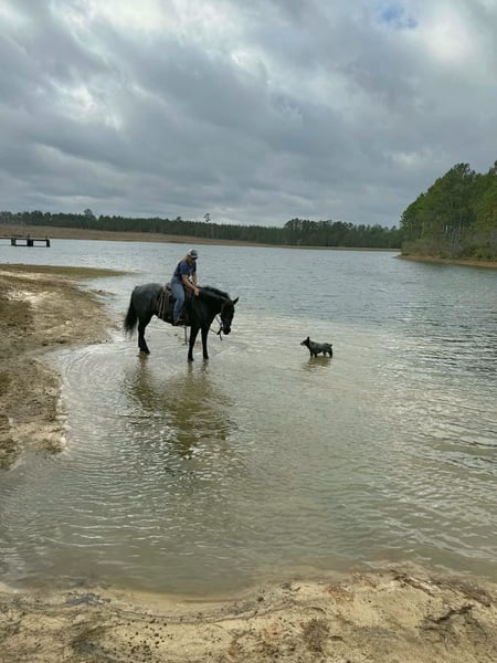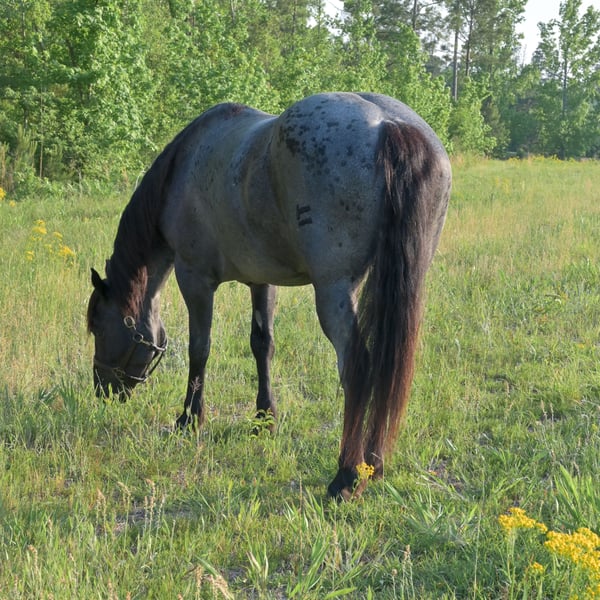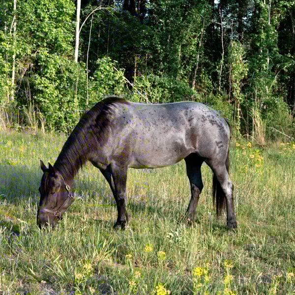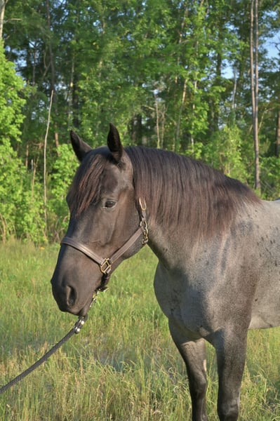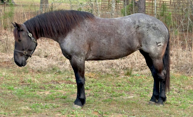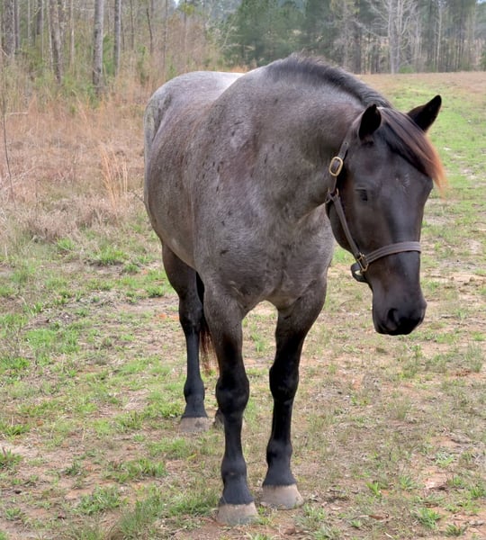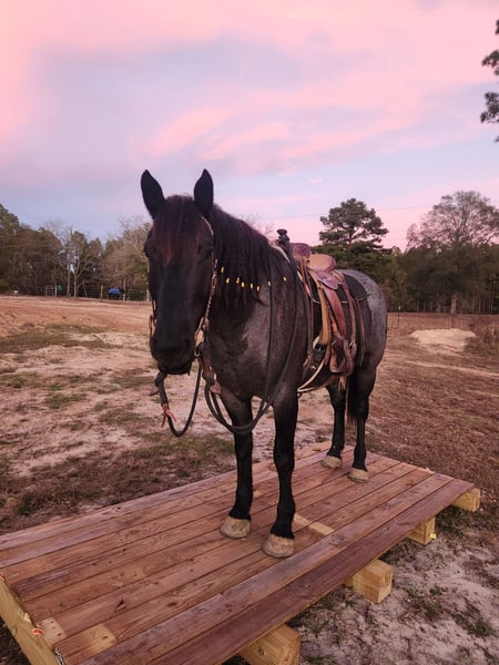 ▪️▫️◾️𝐭𝐡𝐞 𝑴𝒂𝒚 𝐒𝐞𝐥𝐞𝐜𝐭◾️▫️▪️ Happening now thru MONDAY | MAY 4th - Available EXCLUSIVELY on HorseBid's website! For more details and to register visit: www.Horsebid.com CONSIGNOR CONTACT: Kailey Perkins 912-690-1379 LOCATION: Adrian, GA BREED: Draft Cross (Quarter Horse x Clydesdale) REGISTERED: Yes REGISTERED NAME: Frosted Indigo COLOR: Blue Roan HEIGHT: 15.3 AGE: 4 GENDER: Mare Beauty, brains, and papers! Namarra is a coming 5 year old, 15.3hh, blue roan mare, and is registered with the American Draft Cross Registry as "Frosted Indigo". (Quarter Horse x Clydesdale) Namarra is the same horse everyday - not mareish, not spooky, and can sit for weeks and ride off like she never missed a day. She knows vertical and lateral flexion, soft in the face, rides off your seat, has hip and shoulder control, backs easily, and knows her leads. Shes the easiest horse to catch, great to saddle, bridle, bathe, trailer, get her blanket on/off. She is great in a stall, and is very tidy! Namarra will pick you up off the mounting block if you que her to do so, drops her head and takes the bit by herself during bridleing, and will happily stand all day tied anywhere. Great for the Farrier, fly spray, clippers, dewormer, etc. Namarra has been trail rode plenty with groups and by herself. Shes happy to pop over jumps, drag logs or sleds, go through water, brush, cross ditches, and doesnt rush up or down hills. She is also very well desensitized to alot of things - plastic bags, tarps, stock whips - shes just fine with it all! Namarra has been Fox Hunting 2nd and 4th flight - she definitely enjoys the faster pace of the 2nd Flight, but she's also content to ride the slower pace of the 4th Flight. She is great with the hounds darting in and out of the woods, and other groups of horses coming by. Namarra also has experience as a pack horse - she spent 6 months packing in Illinoise. It definitely shows in her confidence on the Trail and her willingness to do whatever is asked of her! Outside of her riding experience and education, Namarra knows lots of groundwork, and is very broke in her body on the ground. She lunges wonderfully, knows how to yield her hips, forequarters, side pass away from you and towards you, roundpens, and knows several different backing exercises. To sum everything up, Namarra is just super easy to get along with, and is uncomplicated in every way. Her training, education, and life experiences makes owning and having a horse what it should be - fun and enjoyable! If you are wanting a gentle, easy to get along with, well trained, and sensible partner for your horse goals, then Namarra is your girl!