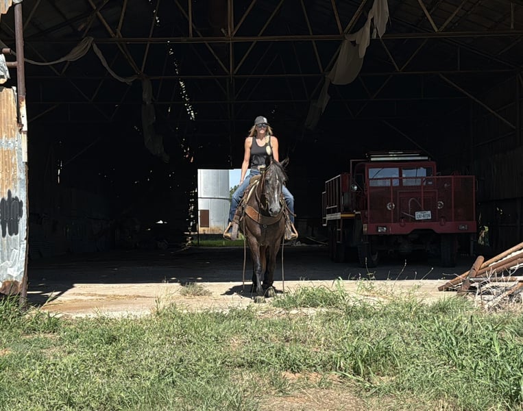 "AVAILABLE ON ONLINE HORSE AUCTION AT www DOT MagicHorseAuction DOT com BIDDING OPEN NOW thru TUESDAY | September 30TH! - BUY IT NOW AVAILABLE! *Final price will be determined on auction site* CONSIGNOR CONTACT INFO: Chanel Holland 559-978-6320 LOCATION: Jacksboro, TX Mini Coop is a fun, compact made draft cross mare. She is an absolutely blast to ride and very versatile. Mini Coop is the jump on and show her something once kind of girl who is smart and very willing. She can jump over anything and will over anything. She is awesome out on the trails and I’ve yet to find something that concerns her. She is a very confident mare with fancy movements. Mini Coop is a lady in every way from catching, saddling, hauling, riding and everything inbetween. You would never know she is a mare and can be next to or with anything with no nonsense. Mini coop is as gentle as they get and we feel she could be rode by any level of rider. She is smooth and easy in her transitions up and down and has great brakes. She is broke to drive and knows a days work. She is safe, sound, and solid. FMI call/text Chanel 559-979-6320. We are happy to answer questions, schedule a test ride, and help arrange shipping!