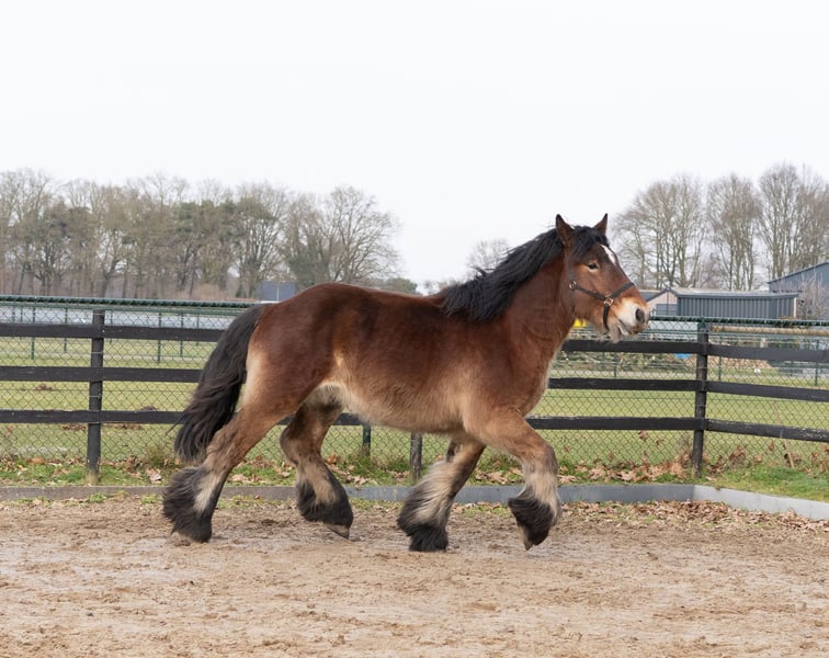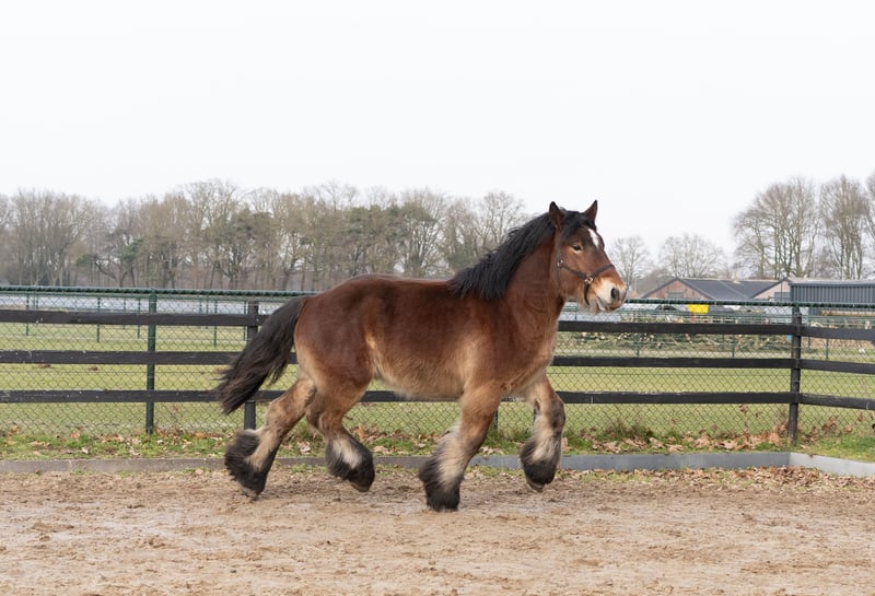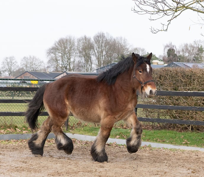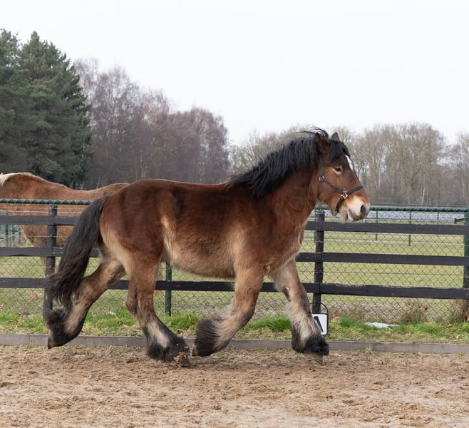 Eddie in de Hoeven is een stoere, lieve en aansprekende hengst van bijna 2jaar. Zijn stokmaat is rond de 1.63m en zal zeker nog groeien. Hij beschikt over sterk, correct en droog beenwerk en beweegt ruim en krachtig. Qua karakter is hij uitzonderlijk dapper en nuchter: nergens van onder de indruk, leergierig en altijd werkwillig. Hij is zeer mensgericht en komt vaak in de hand. Zijn instelling en bouw maken hem niet alleen interessant voor de fokkerij, maar ook zeer geschikt als toekomstig recreatie- of men paard. Moeder: Colette van Vrilkhoven Vader: Bart van Wienenhof Voor Eddie zoeken wij een ambitieus en liefdevol thuis waar hij goed tot zijn recht komt. Serieus interesse? Neem gerust contact op voor meer informatie.
