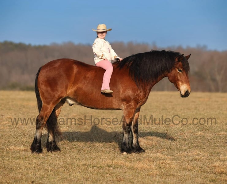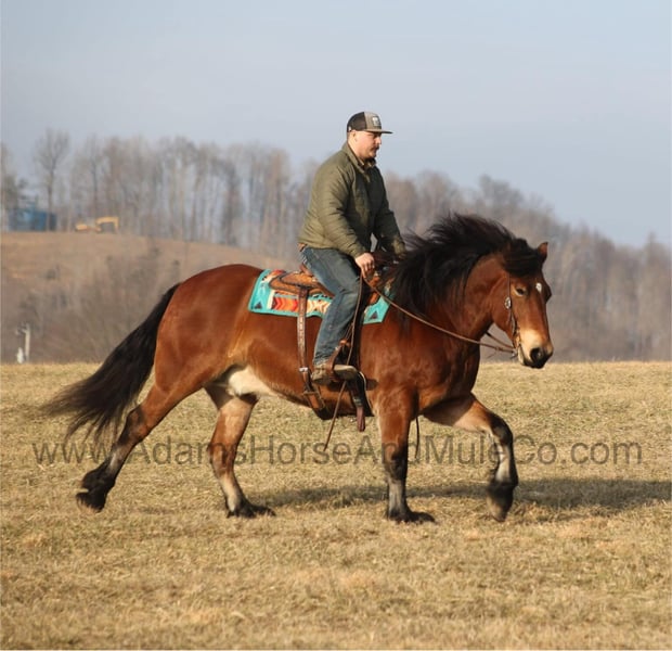 Go to visit our website for more pics and a video. AHAMC has been in the horse business and sold horses over the internet since 2005. We have a long track record of success with hundreds of happy customers. We work hard to match riders with the correct horses and specialize in beginner safe, family friendly horses that have been used and checked out by our family! Meet Olympian, a super stout built Draftcross gelding that is standing around 16hh. He will weigh 1450lbs, he is 9 years old and he has all the good looks, the feathering and (the best part) the mindset that anyone could ask for! Not only does he look cool, he has all of the other boxes checked as well… he is Mr. Personality, as friendly as they come, loves attention and is very calm natured. We originally trained and sold Olympian back in early 2021 and he has made his home in Delaware ever since, until they decided to downsize. Olympian has been ridden by every member of our family all the way down to our 6 year old daughter. He has been ridden down the highways and he is traffic safe as well. Olympian is great on trails and he will cross creeks, ditches, logs and navigate rough rocky areas. He has a smooth jog, a nice easy to set lope, a good stop and backs with ease! He has been exposed to all kinds of wildlife such as deer or turkey or other animals like cows or dogs and will go anywhere that he is asked too. He has been rode many miles in the mountains of Eastern Kentucky and encountered every obstacle possible on the trail. He will go up or down even the steepest slopes, across deep creeks, over downed trees, and over all types of rough terrain while still being sure footed. Olympian is not cinchy, cold backed, does not crib or weave. In addition to riding, Olympian has also been driven down the highways as well. He is a super cool horse that anyone is sure to love!!! Feel free to call Eric 606-308-2461 with any questions.