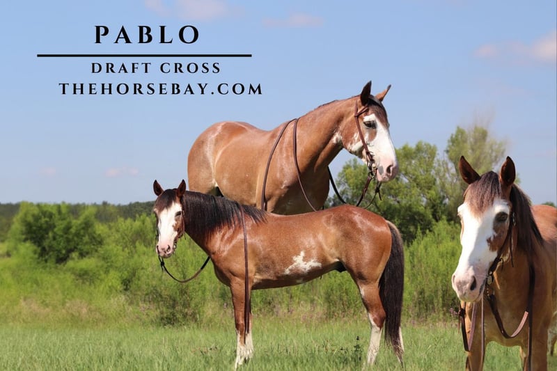 OPEN BIDDING ON THEHORSEBAY,COM. SALE ENDS ON 08/21 @ 4:40PM CT. More information is available on the website, including an UTD vet inspection, Coggins, video, images, and the owner's contact information to ask questions, request information, or make arrangements to come to visit. Meet our incredible 9-year-old Draft cross paint gelding named Pablo! Standing at 14.2 hands, he might be on the smaller side, but don’t let that fool you—he’s got the heart and strength to hold his own! This versatile and extremely athletic horse has done it all: – Ranch Work – Trail Riding – Halter Breaking Horses Whether you need a reliable partner for ranch chores or a steady companion for trail adventures, he’s your guy. He will cross anything you ask him to. He has no spookiness to him at all. He’s super athletic in the sorting pen. He would be a great horse for someone to take and make him an English horse or take him to the team sorting pen! He is extremely cowy and knows his job in the sorting pen! His experience and athleticism make him a perfect fit for any rider that has some experience looking for a dependable and hardworking horse. He’s one of a kind to ride and look at!