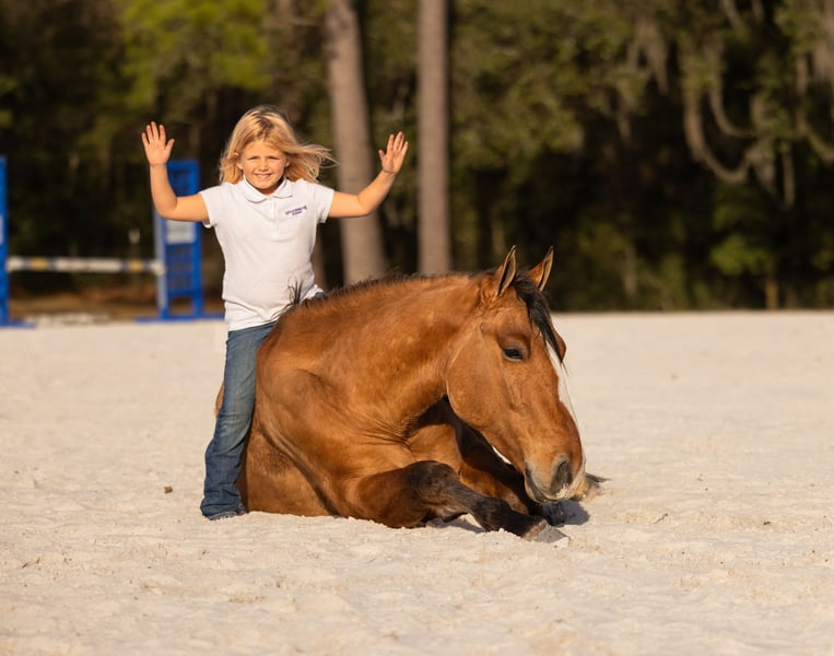 ⚜️𝓽𝓱𝓮 𝐆𝐎𝐋𝐃 𝓢𝓮𝓵𝓮𝓬𝓽⚜️ Happening now thru MONDAY | MARCH 23rd - Available EXCLUSIVELY on HorseBid's website! For more details and to register visit: www.Horsebid.com CONSIGNOR CONTACT: 3S Showing & Sales 919-810-0760 LOCATION: Ocala, FL BREED: Draft cross REGISTERED: No REGISTERED NAME: Crown Royal COLOR: Dun HEIGHT: 15.3 AGE: 4 GENDER: Gelding Crown Royal is a 4 year old, 15.3 HH draft cross with the kind of mind and disposition families dream about. He is by a Gurrola bred Quarter Horse stud and out of a Morgan × Belgian mare, giving him the best qualities of each breed. The Quarter Horse contributes trainability and athleticism, the Morgan adds heart and versatility, and the Belgian brings strength, bone, and that naturally calm draft disposition. The result is a horse with the perfect blend of brains, comfort, and reliability. He is a striking gelding with a gorgeous dun dorsal stripe down his back and the kindest expression to match his personality. From the moment he was born, Crown Royal was surrounded by children — truly redefining the phrase “born broke.” He grew up with kids climbing on him, brushing him, and learning around him, and because of that upbringing, his patience and kindness shine through in everything he does. He genuinely enjoys people and especially has a soft spot for kids and timid riders. He is the type of horse that builds confidence rather than taking it away — the kind families search for but rarely find. I had the pleasure of offering his full brother, Captain, last year, and this family continues to impress in every way. Crown Royal is the last full brother that will ever be available, making him a rare opportunity to own one from this exceptional cross. Crown Royal has been extensively exposed to “real world” situations and is a true all-around horse. He has been ridden on large cross country course where he confidently jumped logs, ditches, banks and went through water. He has also been ridden double, triple, and even backwards. He has completed obstacle courses including teeter-totter bridges, pool noodles, traffic obstacles, and more. He has been around cattle, helped gather longhorns, and has been ridden comfortably through town, around loud semi-trucks, heavy traffic, construction noise, and busy environments. We’ve even ridden him to coffee shops and local food stands — and yes, we have even gone fishing on him. Under saddle, Crown Royal rides both Western and English and has done dressage work. He moves nicely off the leg, collects, and easily transitions into an extended trot or canter. He has exceptionally smooth gaits with a fantastic jog, an easy rhythmic trot, and a soft, comfortable canter that is perfect for beginner riders — especially kids learning to canter. For riders who need a little extra help mounting, Crown Royal is trained to come to the mounting block and will also lay down on cue. He is naturally more whoa than go, but he is not lazy-he is just quiet, steady, and responsive. Crown Royal truly is a certified all-around gelding. Whether you want to enjoy hunters, lower-level jumping, dressage, fox hunting, ranch riding, trail riding, or simply have a safe and enjoyable pleasure mount, his versatility and ultra safe mentality sets him apart. With his mind, bravery, and extensive exposure, he is the ultimate beginner friendly horse that I trust completely. On the ground, he is just as easy as he is under saddle. He loads, ties, and cross ties quietly, stands politely for grooming, and is excellent to handle. He is an easy keeper, currently wears front shoes only, and turns out happily in a mixed herd. Leave him in the stall for a few days and pull him out — you will have the exact same horse. Crown Royal has been on overnight camping trips where he confidently crossed deep water, climbed rocky hills, and explored miles of trails from Wyoming to Florida, always carrying our little riders safely along the way. He is incredibly sure footed, calm, and dependable wherever the trail leads. And in true family horse fashion — one of our little riders has even hopped on him bareback in the dark to go meet the pizza delivery driver. 🍕 That’s just the kind of horse he is. ✨ Ladies — enjoy your English ride, then throw your husband on him in a Western saddle and head down the trail. He truly does it all. And yes… he is a real-life couch to sit on. ✨ Crown Royal easily falls into our “elite” category of horses. If you’re searching for one of the safest geldings you can find — from the tiniest riders to the “golden aged” riders — Crown Royal would be my first choice. UTD on Coggins, vaccines, and health certificate. Trials at our farm are welcome, and we can arrange shipping anywhere with our in-house shipper, making the buying process easy and seamless for out-of-state buyers. Crown Royal truly checks every box — and then some.