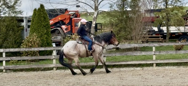 🌟𝑨𝒑𝒓𝒊𝒍 𝐀𝐋𝐋 𝐒𝐓𝐀𝐑 𝐋𝐈𝐍𝐄𝐔𝐏🌟 Happening now thru MONDAY | APRIL 6th - Available EXCLUSIVELY on HorseBid's website! For more details and to register visit: www.Horsebid.com CONSIGNOR CONTACT: CM Farms 717-875-2061 LOCATION: Gap, PA BREED: Brabant/QHx REGISTERED: No COLOR: Bay Roan HEIGHT: 16.2 AGE: 4 GENDER: Gelding Meet ✨Beau!✨ This handsome hunk of a gelding is a bay roan, four-year-old Brabant/QHx, standing right around 16.2–3 hands high. More fondly known around the barn as Beau Beau! If you’re looking for a sturdy, safe-minded guy, look no further. Beau’s got all the curves and substance without the dinner plate feet! His size and quiet demeanor make him suitable for a variety of riders. In person, this boy is truly breathtaking with his pretty roan coloring, hair for days, and lovable personality. Beau has hands-down been a favorite—he’s easy to get along with, incredibly sensible, and a serious trail master! He’s a point-and-go ride with no nonsense necessary. Despite his chunkier size, he’s even been very athletic over jumps! There’s nothing Beau can’t do. He rides Western, English, bareback, and you can even ride him bridleless! In the ring, Beau has had the best foundation put on him. Brought along with care and gentleness, his confidence shows every time you swing a leg over. It’s rare a four-year-old just “gets it,” but he truly does. He rides better than most horses twice his age! He neck reins, direct reins, and is so in tune with his rider that he’ll simply move off leg and stop off seat—no reins needed! He’s so comfortable you can easily ride all three gaits bareback and swing a tarp off him at the same time. He is not overly sensitive and adjusts to the level of his rider, making him fun for more experienced riders to play with buttons while still being safe enough to pack around a husband or amateurs. He is incredibly smart and intuitive for his age. He tends to be more of a push ride; however, he’s happy to pick up and go when asked, and he has nice self-carriage. Or, if the job is to mosey around the ring all day on a loose rein packing anyone along, he’s happy to oblige. This gelding has a great handle on him, and he is one we are proud to present. His nonchalant, unbothered personality and quiet way of going give everyone who rides him a sense of confidence and always leave a smile! On the trail, Beau is happy to pack along anyone and everyone! If you’re looking for that solid husband horse—a true trail master—here’s your guy. He is sure-footed, sturdy, and careful. You can drop the reins and he’ll do the rest. He’s a steady and brave leader when needed or just as happy to follow along. This boy is never in a hurry and never gets worked up. He’s one you can sit back and enjoy—crack a beer on, play music off him—you name it, you can do it. He’ll be the first to swim in the river, cross creeks and bridges, bushwhack through windy trails, or go for a lope in the field—he does it all. He’ll carefully step over logs or canter at them and give you a cute jump! He’d make an ideal candidate for fox hunting with how comfortable and levelheaded he is. Whatever direction Beau is taken in, we are certain he will be a star. In the barn, Beau has good manners and is respectful in every situation. He has zero vices in the stall or in turnout. He gets along with everyone and minds his business. He tends to have more of a stoic personality until he gets to know you. He’s one that will truly thrive and bond with his person—a real ride-or-die type of partner. He’s sweet, gentle, and has been an absolute champ for everything we’ve thrown at him. He is traffic-safe and sound, loads on and off the trailer with no hesitation, acts the same off-property, and is the same horse every time you pull him out. He’s an absolute pleasure to have in the barn and one you look forward to seeing every day. Whoever gets Beau will be the luckiest person in the world—we want only the best for this phenomenal boy. Beau is UTD on Shots, Coggins, Deworming, Dentist, and Farrier.