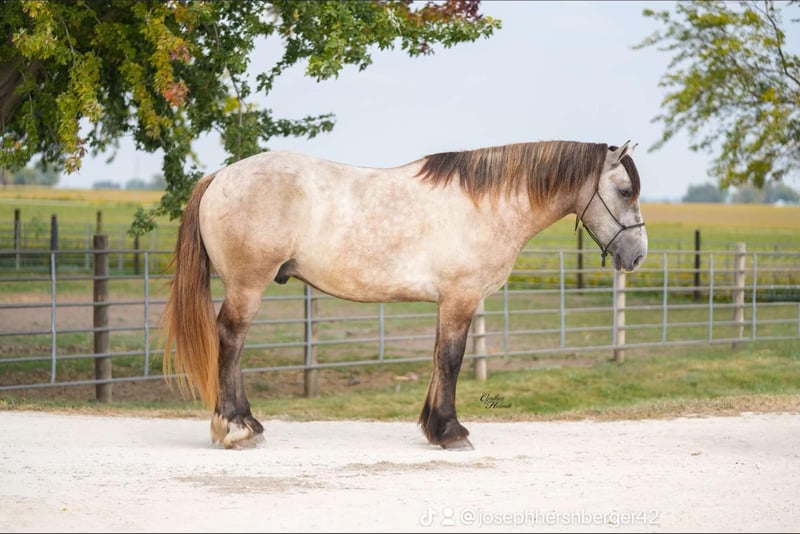 🎲𝓽𝓱𝓮 𝐑𝐈𝐃𝐄𝐑'𝐒 𝓒𝓱𝓸𝓲𝓬𝓮🎲 Happening now thru MONDAY | NOVEMBER 17th - Available EXCLUSIVELY on HorseBid's website! For more details and to register visit: www.Horsebid.com CONSIGNOR CONTACT: Platinum Star Stables 260-977-9095 LOCATION: Independence, Iowa BREED: Draft Cross REGISTERED: No COLOR: Grulla Roan HEIGHT: 17 AGE: 4 GENDER: Gelding Badger is a stout built, 16.1hh, just turning 5 year old, grey draftcross gelding. He has been ridden every where that you could ask one to go… Lots of outside miles, down the trails, across the creeks, ditches, deadfall… he does it all! He handles any obstacles that are in his way, is safe to ride down the highways and through town as well. He rides well in the arena and does fine in a group as well as alone. He neckreins around nice, takes his leads, lopes nice circles and has a good stop. Badger is a great size that will fit any level of rider, right down to the youngest ones yet he is stout enough to carry any adult. He is the friendliest horse that you will ever meet and loves attention. He is farrier friendly, he tacks up quietly and walks right off when asked after he is mounted. He has been around lots of kids and loves attention and is easy to catch as well. He absolutely does not buck, bite or kick as he is totally safe and well trained. In addtion to riding Badger also drives very well, whether in the field, down the highways or through town. Badger is blemish free, has had all of his shots, and has been dewormed. He sells 100% sound and sane. We invite anyone to come see and ride him in person so they can understand how truly awesome that he is! Located in Independence, IA. Contact Ervin with Platinum Star Stables 260-977-9095 with any questions.