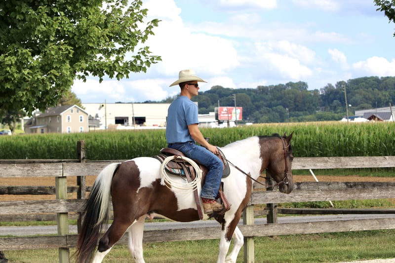 "AVAILABLE ON ONLINE HORSE AUCTION AT www DOT MagicHorseAuction DOT com BIDDING OPEN NOW thru TUESDAY | September 16TH! - BUY IT NOW AVAILABLE! *Final price will be determined on auction site* CONSIGNOR CONTACT INFO: Juli Hubik 717-875-2061 LOCATION: Gap, PA Meet Sánchez, a 4-year-old, 15.1–15.2hh Draft/Paint cross gelding, a.k.a. Mr. Adorable Tank on Four Legs. This compact cutie is built like a brick house and has the personality of your favorite golden retriever. He’s the kind of horse that makes you smile every time you see him — and he knows it. He’s got solid conformation, like “could survive the apocalypse” solid, but without being a skyscraper. He’s the perfect height for those of us who like our horses to be sturdy and substantial — but not so tall that you need a parachute to dismount. He takes up leg beautifully and rides both English and Western, because why limit yourself? In the arena, Sánchez is that magical combination of comfy and uncomplicated. He stands patiently to be mounted — block, ground, whatever — and once you’re on, he’s got a walk-trot-canter that feels like riding a couch made of clouds. His trot is easy to sit (yes, really), and his canter? So smooth you’ll forget about your to-do list and start planning your next trail snack. He’s got a shorter stride, which means tight circles are no problem — and you won’t feel like you’re driving a stretch limo. He’s responsive, but not reactive — just the right mix of “let’s go” and “chill out.” You don’t have to constantly nag him to move, but you can put a leg on without getting launched into space. He stops like a pro with a little seat and a “whoa,” and his brakes work better than most luxury cars. Sánchez is basically the Swiss Army knife of horses. Want to dabble in dressage? Go for it. Try some jumping? Sure. Hit a hunter pace? Absolutely. Or maybe you just want a best buddy for trail riding and barn gossip — he’s your guy. On the trail, he’s a total gem. Front, middle, back, solo — you name it. He’s been through creeks, rivers, woods, and wide-open fields like he’s auditioning for a nature documentary. He’s brave, steady, and probably more reliable than your GPS. He’s even taken beginner riders out for a spin and kept things cool, calm, and collected. He’s popped over tiny logs in the field like a saint, knees up, ears forward, and zero drama. This guy loves going new places — he’s basically the horse version of that friend who always has their bag packed for a weekend trip. Load him up, and he’s ready to go, ears perked and wondering if there will be snacks. Desensitization? Oh, he’s done it all. Fire? Check. Traffic? No problem. Tarps, balls, smoke bombs? Bring it on. While he’s not a total deadhead (he does have a brain), he’s not spooky — more curious than anything. If something startles him, he does a little blink, shrugs it off, and keeps on trucking. In the barn, Sánchez is a gentleman. He minds his manners, respects your space, and plays nicely with the other horses. He stands like a champ for grooming, tacking, and farrier visits. He picks up his feet without fuss and never turns into a pushy brat. At first, he might seem a little stoic — like a mysterious cowboy in a movie — but give him a minute, and suddenly he’s your best friend, rooting through your pockets for peppermints like a seasoned treat detective. We truly love this young guy and believe his future is super bright. That said, he is still young and learning, so he probably isn’t ideal for a complete beginner unless they’re working with a trainer who can help guide him on his path to world domination — er, success. We want a home for him where he’ll be appreciated, loved, and maybe occasionally spoiled with cookies. Because let’s be honest — this horse is kind of amazing.