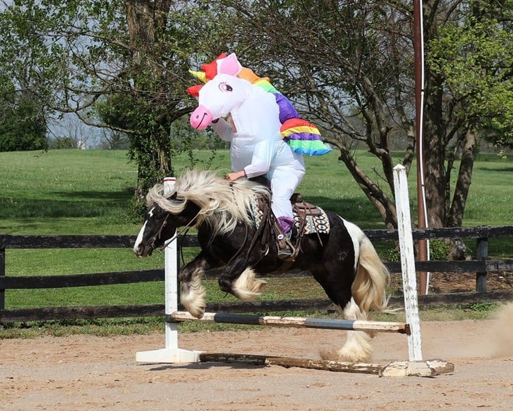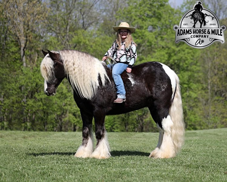 Übergeben an Cowgirl Cadillacs in Sheridan, WY. Verkäufe Juni 14-15th. Sie können online bieten, telefonisch bieten oder persönlich bieten! Daraus werden süße Träume gemacht!!! CROSS CREEK SUGARFOOT könnte keinen passenderen Namen haben als "Sugar"! Er ist das süßeste Pferd mit der neugierigsten Persönlichkeit und er hat noch NIE einen Fremden getroffen! Er liebt es, wenn die Kinder mit ihm in den "Schönheitssalon" gehen; baden, frisiert werden und auf Hochglanz gebracht werden sind seine Lieblingsbeschäftigungen! Dieses Pferd ist ohne Zweifel eine echte "Barbie". Sugar ist ein gut gebauter 14,2h, 4 Jahre alter, seltener Silver Dapple Tobiano, registrierter Gypsy Vanner Wallach! Die Leute lieben diese Gypsies für ihre Vielseitigkeit und ihr ruhiges Wesen, und Sugar ist ein wahrer Beweis für diese Rasse! Er wurde auf der Ranch geritten, Kühe getrieben, auf der Weide angeseilt und verarztet. Er wurde von Kindern auf Autobahnen und durch die Stadt geritten und ist sicher im Straßenverkehr. Er liebt es, auf Pfaden unterwegs zu sein und einfach nur langsam und entspannt zu reiten! Er überquert Bäche, Gräben, Baumstämme und navigiert durch unwegsames, felsiges Gelände, während er auf die wertvollste Fracht (den Reiter) aufpasst! Sugar hat alle Arten von Wildtieren kennengelernt und geht überall hin, wo man ihn hinschickt. Er hat einen geschmeidigen Jog, einen schönen Lope, er lässt sich zügeln und dreht einen Kreis in beide Richtungen, macht Seitengänge und Rückwärtsgänge mit Leichtigkeit! Sugar hat einige Tricks auf Lager und legt sich zum Auf- und Absitzen hin. Sugar wurde schon von Kindern aller Altersgruppen ab 4 Jahren geritten und passt sich dem Können jedes Reiters an. Wenn Sie von einem besonderen Reitpartner und besten Freund träumen, werden süße Träume wahr... nehmen Sie einfach Sugar dazu! Rufen Sie 606-308-2461 für weitere Informationen.