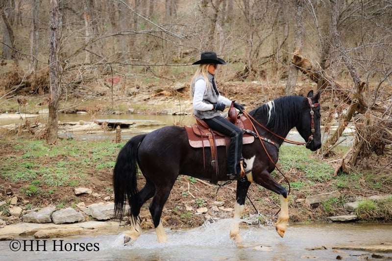 ONLINE AUCTION Place your bids at www.PlatinumEquineAuction.com Starting Bid $3500 Auction ends March 23rd, 2025 Need a new saddle? Check out White Rock Saddles on our website or Facebook! This is “PVF ROCKET”, a stunning BLACK AND WHITE REGISTERED FRIESIAN SPORT HORSE GELDING broke to ride and drive. This gelding is a handsome 15.2 hands tall. He is 4 years old and has had professional training. This nice gelding will lope circles, catch his leads, neck rein, and stop on whoa. He has been trail ridden and been through deep water, rocky stream beds, and big timber. He is well trained and well mannered. He is respectful of your space and moves off of leg cues. He has been hitched and driven to a cart and wagon. He has been through the cross country driving courses. He is traffic safe, not spooky, and he is obedient. This gelding has lots of heart, style, and presence. He is a very fun horse to ride with lots of feel in the bridle and on his ribcage. He is responsive, collected, and cool. Located in Flemingsburg, KY. For more info or to make a Buy It Now Offer contact HH Horses Erin 304-238-4155 ONLINE AUCTION Place your bids at www.PlatinumEquineAuction.com Starting Bid $3500 Auction ends March 23rd, 2025 Need a new saddle? Check out White Rock Saddles on our website or Facebook!