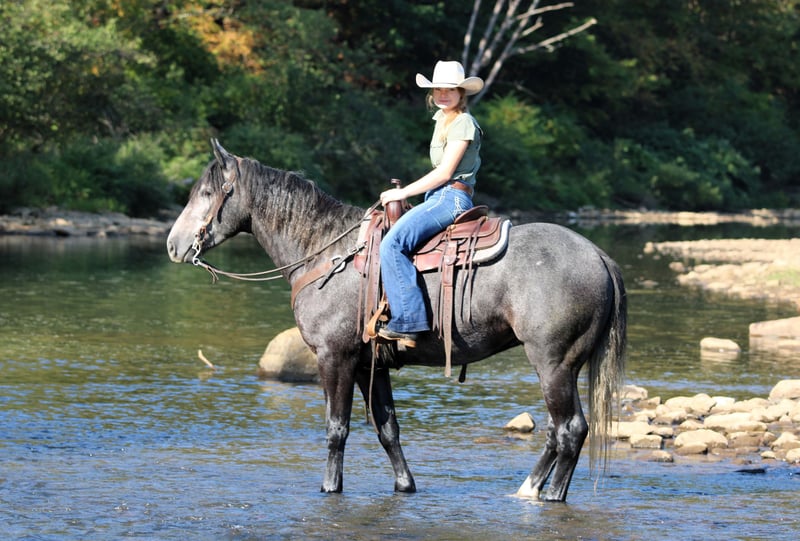 🍂 𝓐𝓾𝓽𝓾𝓶𝓷 𝑨𝑳𝑳 𝑺𝑻𝑨𝑹 𝑳𝑰𝑵𝑬𝑼𝑷 🍂 Happening now thru MONDAY | OCTOBER 6th - Available EXCLUSIVELY on HorseBid's website! For more details and to register visit: www.Horsebid.com CONSIGNOR CONTACT: Rolling Rock Farms 814-924-3828 LOCATION: Miola PA BREED: Draft cross REGISTERED: No COLOR: Grey HEIGHT: 15.3 AGE: 4 GENDER: Gelding Perry is a gorgeous 4 year old dapple grey draft cross gelding standing a solid 15.3 hands. His unique coloring and eye-catching presence turn heads everywhere he goes, and his quiet, confident demeanor makes him a joy to be around. Even though he is still young, Perry carries himself like a seasoned veteran. He rides with the kind of maturity and steadiness you normally only find in older horses. Under saddle, Perry is soft in the bridle, willing to learn, and extremely broke. He neck reins easily and stays light in the bridle, trotting around with an easy headset. His lope is smooth and balanced, and he catches both leads easily making him comfortable for long rides in the arena or out on the trail. Whether you prefer to ride in a saddle or bareback, Perry is equally steady and sure footed. This gelding has also been exposed to plenty of real world experiences that show off his versatility. He has been roped off of and will confidently drag a calf. He has carried the American flag with confidence. Out on the trail, Perry is the kind of horse you can count on. he moves through water, brush, and all kinds of rough terrain without a second thought. He is not spooky and stays level headed in new places and around new sights and sounds. Around the barn and in the pasture, Perry is easy to care for and easy to get along with. He does well whether kept in a stall or turned out in the pasture, and he is lower in the pecking order, making him a good fit in a mixed herd. He stands quietly to be saddled, brushed, and bathed, and stands good for the farrier. He currently wears four shoes and is kept up to date on his care. He sells with a current negative Coggins and a rabies vaccination, so he is ready to head straight to his new home. If you’re looking for a young horse with the mind of an experienced one, one that is handsome, broke, and already proven in and out of the arena, Perry is the complete package. For more information or to schedule a time to meet him, please contact Ethan at (814) 924-3828.