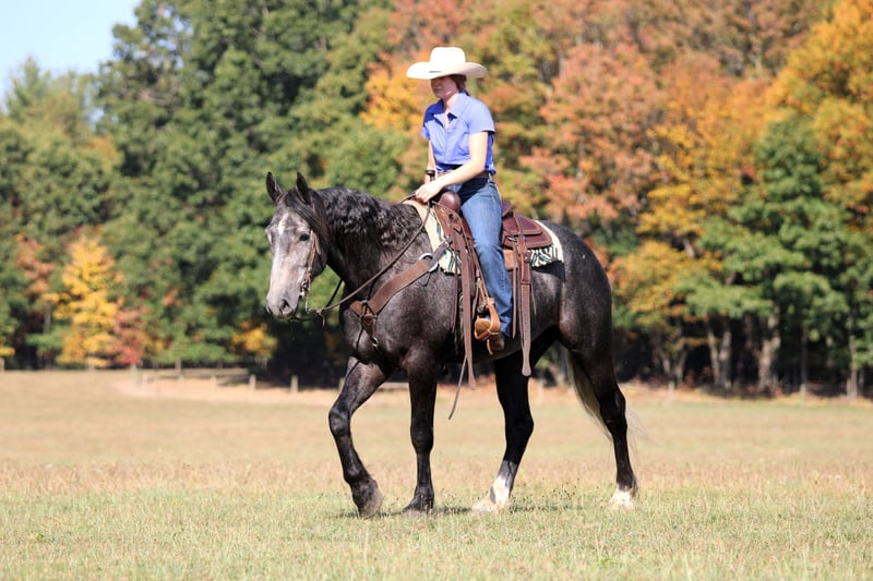 🍂 𝓐𝓾𝓽𝓾𝓶𝓷 𝑨𝑳𝑳 𝑺𝑻𝑨𝑹 𝑳𝑰𝑵𝑬𝑼𝑷 🍂 Happening now thru MONDAY | OCTOBER 6th - Available EXCLUSIVELY on HorseBid's website! For more details and to register visit: www.Horsebid.com CONSIGNOR CONTACT: Rolling Rock Farms 814-924-3828 LOCATION: Miola PA BREED: Draft cross REGISTERED: No COLOR: Grey HEIGHT: 15.3 AGE: 4 GENDER: Gelding Perry is a gorgeous 4 year old dapple grey draft cross gelding standing a solid 15.3 hands. His unique coloring and eye-catching presence turn heads everywhere he goes, and his quiet, confident demeanor makes him a joy to be around. Even though he is still young, Perry carries himself like a seasoned veteran. He rides with the kind of maturity and steadiness you normally only find in older horses. Under saddle, Perry is soft in the bridle, willing to learn, and extremely broke. He neck reins easily and stays light in the bridle, trotting around with an easy headset. His lope is smooth and balanced, and he catches both leads easily making him comfortable for long rides in the arena or out on the trail. Whether you prefer to ride in a saddle or bareback, Perry is equally steady and sure footed. This gelding has also been exposed to plenty of real world experiences that show off his versatility. He has been roped off of and will confidently drag a calf. He has carried the American flag with confidence. Out on the trail, Perry is the kind of horse you can count on. he moves through water, brush, and all kinds of rough terrain without a second thought. He is not spooky and stays level headed in new places and around new sights and sounds. Around the barn and in the pasture, Perry is easy to care for and easy to get along with. He does well whether kept in a stall or turned out in the pasture, and he is lower in the pecking order, making him a good fit in a mixed herd. He stands quietly to be saddled, brushed, and bathed, and stands good for the farrier. He currently wears four shoes and is kept up to date on his care. He sells with a current negative Coggins and a rabies vaccination, so he is ready to head straight to his new home. If you’re looking for a young horse with the mind of an experienced one, one that is handsome, broke, and already proven in and out of the arena, Perry is the complete package. For more information or to schedule a time to meet him, please contact Ethan at (814) 924-3828.