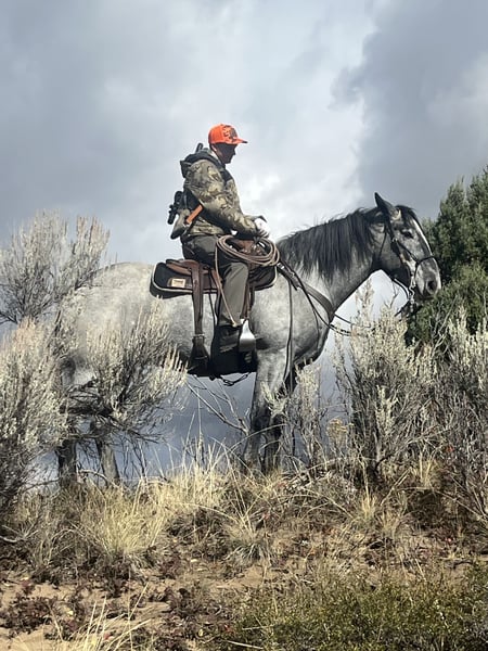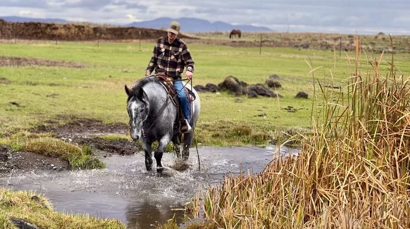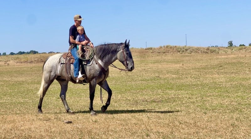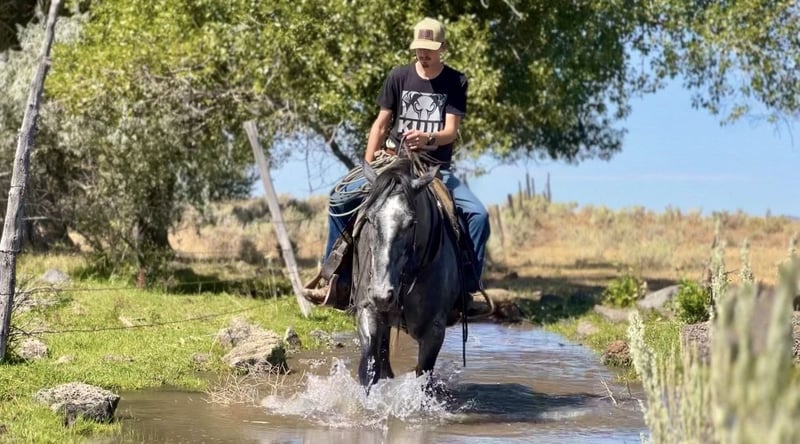 🎄𝐓𝐇𝐄 𝑯𝒐𝒍𝒊𝒅𝒂𝒚 𝐂𝐋𝐀𝐒𝐒𝐈𝐂🎄 Happening now thru MONDAY | DECEMBER 15th - Available EXCLUSIVELY on HorseBid's website! For more details and to register visit: www.Horsebid.com CONSIGNOR CONTACT: Sand Creek Ranch 208-821-2351 or 208-351-2863 LOCATION: Saint Anthony ID BREED: Draft Cross 1/2 Belgian x 1/2 Quarter Horse REGISTERED: No REGISTERED NAME: John Wayne COLOR: Blue Roan HEIGHT: 16-16.1 AGE: 4 GENDER: Gelding John Wayne or JW for short is a big beautiful coming 5 year old blue roan Belgian draft cross that we’ve raised up from a weanling. He is a very nice gelding that stands a solid 16 hh. This beautiful boy knows what a days work is all about and looks good doing any job asked of him. He’s that all around type, goes western or English. JW is soft and supple, will flex both ways, lunge on a loose line, as well as move his front and hind quarters with ease. JW lopes nice collected circles on the correct leads on a loose rein. For being a draft cross JW carries his head low and below level. He has a great stop, neck reins and is starting to spin. JW has kind eyes and wants to be your friend. He will drop is head almost on the ground to be haltered and bridled. He stands for the farrier, hauls and ties good. Not only will JW come to a mounting block for easy mounting and dis mounting but he will lay down from the ground or on top on cue. He also knows how to sit. JW has had the pack saddle on him and been on some light rides with them. He handled it great and never has skipped a beat. JW has moved cows and we have roped and snubbed up to a few on him as well. He handled it good and with more practice would make a heck of a ranch horse that could hold anything. We have also been roping and tracking the dummy on him out of the box and he is taking to it. JW will go through obstacle courses, will go over tarps, teeter todder bridge and has been around traffic. JW will cross water, side pass to open and close gates and knows where to place his feet outside. Although most of his training has been focused on ranching JW has recently started dabbling in the English world too. From fox hunting to jumping and anything in between. He would make an excellent low level eventer, hunter or equitation prospect. One that will finally give you those “relaxed” dressage scores to boast! He is athletic, very well balanced, has beautiful confirmation, and is just natural at anything you ask him to do. It doesn’t matter if you’re packing him up in the mountains, riding in the arena, or doing ranch work, JW is always getting noticed with his rich blue roan color and confirmation. We have owned and trained 4 half brothers to him and they have to have been good minded geldings and JW is no different. He loads and backs out, will load in a 2 horse trailer, good to shoe, and haul. He seeks with a current PPE taken December 4th 2025.