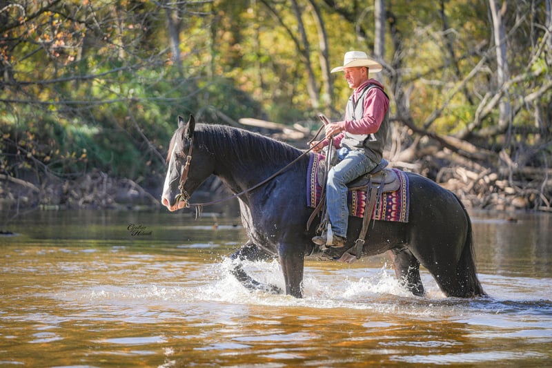 ⚜️𝐓𝐇𝐄 𝐅𝐀𝐋𝐋 𝐇𝐄𝐑𝐈𝐓𝐀𝐆𝐄 𝐂𝐋𝐀𝐒𝐒𝐈𝐂⚜️ Happening now thru MONDAY | NOVEMBER 3rd - Available EXCLUSIVELY on HorseBid's website! For more details and to register visit: www.Horsebid.com CONSIGNOR CONTACT: Diamond J Equine Services 319-415-9460 LOCATION: Fairbank IA BREED: Draft Cross REGISTERED: No COLOR: Black HEIGHT: 16.2 AGE: 5 GENDER: Gelding “Blaze” is a gorgeous 5-year-old draft cross gelding. He stands 16.2 hands and is well broke to both ride and drive, single and double. Blaze has had lots riding in the arena, knows his leads and moves off of leg pressure well. Blaze rides out on trails alone or with other horses with ease. He’s 100% traffic safe and has been ridden on the road and down the trails a lot. Stands for the farrier, bathe, clips very well. Blaze loves attention and always meets you at the gate. We have done all the training on blaze and owned him for almost three yrs. We would love to answer any questions you might have about blaze. For more info on blaze please call Jonas @ 319-415-9460.