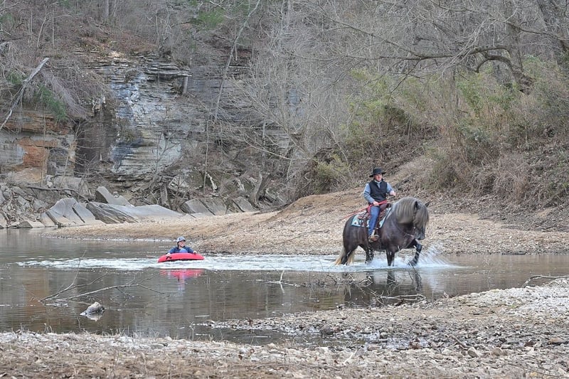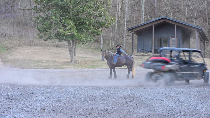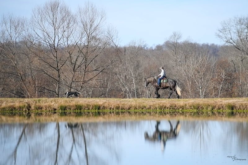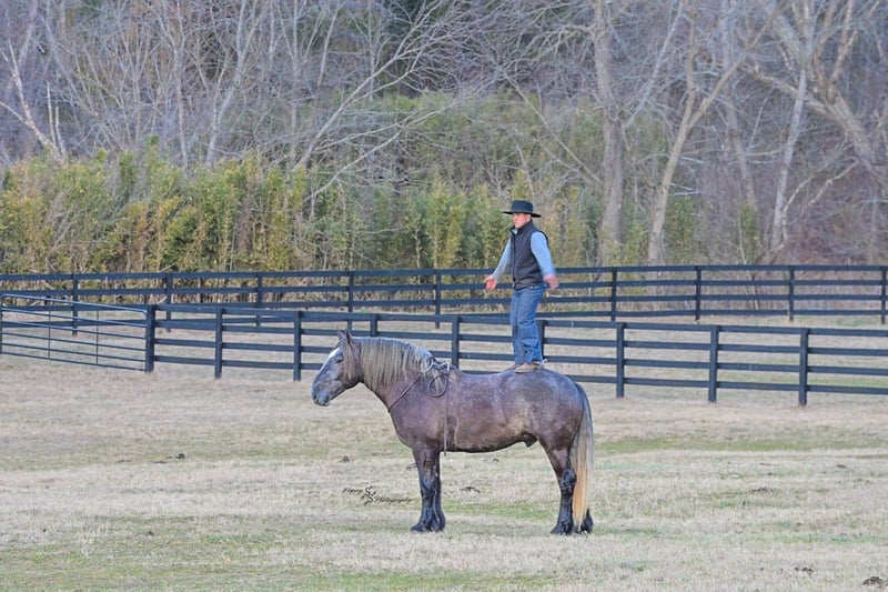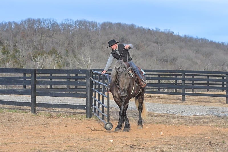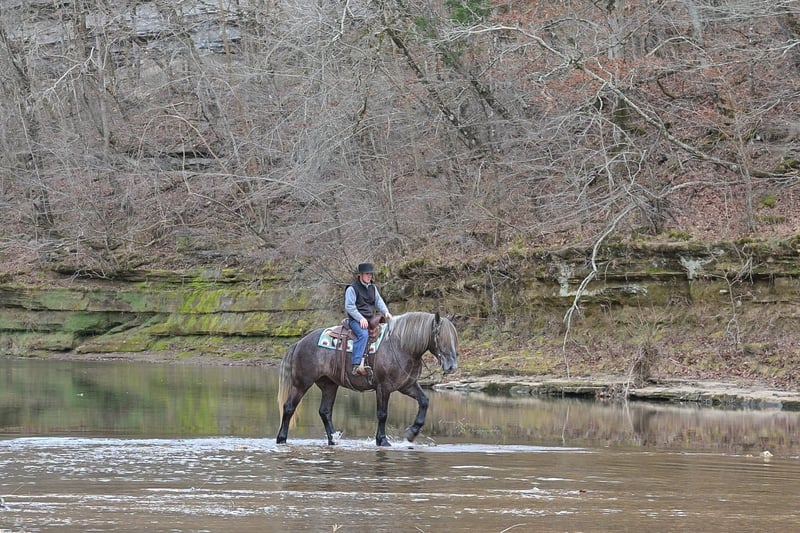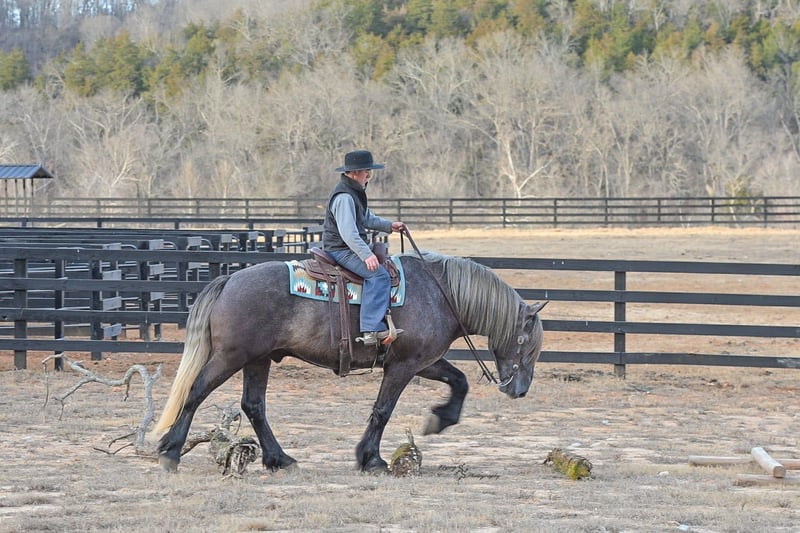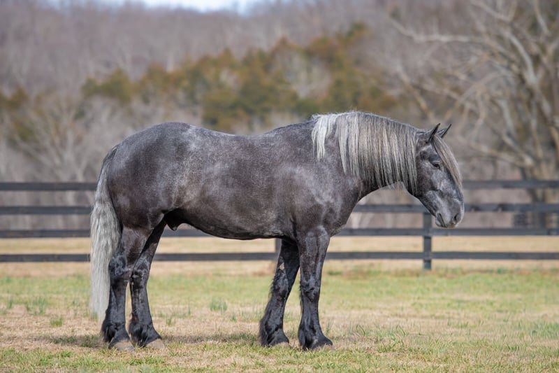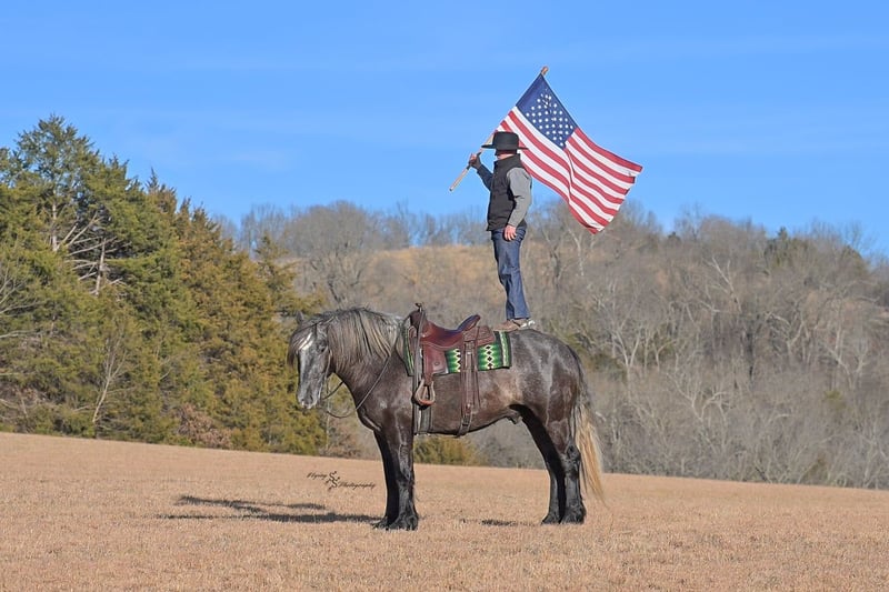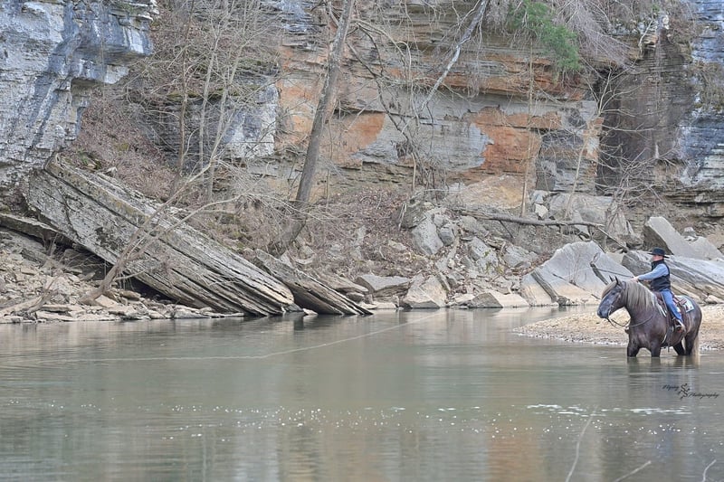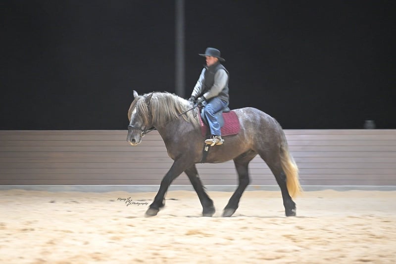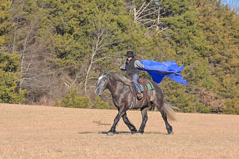 "AVAILABLE ON ONLINE HORSE AUCTION AT www DOT PlatinumEquineAuction DOT com BIDDING OPEN NOW thru SUNDAY | APRIL 12TH! *Final price will be determined on auction site* CONSIGNOR CONTACT INFO: Edwin Raber 319-283-0616 LOCATION: Fairbank, IA Keystone is the definition of a gentle giant and is the perfect gentleman whether his rider is big or small. He is a 5 year old draft cross gelding that stands a solid 16.2h, weighing in at 1500 lbs, and wearing a #6 draft shoe. He is honest and genuine in his ride, taking care of an inexperienced or a young rider as they stroll down the trails. Keystone is a jack of all trades; he rides Western, English, bareback, bridleless, and even drives! You can expect him to be a seasoned trail or arena mount, even with time off, he picks things up right where you left off. He is a pleasure to be around on the ground, under saddle, or under harness. Keystone will go wherever he is pointed down the trails, where he easily crosses downed timber, walks quietly through the rivers, and handles rugged terrain with ease. He is accustomed to all wildlife as well, whether he comes across a flying pheasant in Iowa, or a speedy road runner in Arkansas; Keystone has seen it all! Whether you are out on the trails or in the arena, he stands patiently at a mounting block or will even stand next to a rock or log to be mounted. He is truly a horse that an entire family can enjoy, and is so versatile. He has a personality that everyone loves, as he enjoys all of the attention. He is personable with everyone and doesn't know a stranger. You will notice in his photos and video that he has a true double mane, falling thick and even on both sides of his neck! He is truly one of a kind. Keystone has put up with a lot from me as you will see in the video, always keeping a level head and the utmost patience. He stands quietly with side-by-sides doing donuts around him, and even entertains attention from a 7.5ft T-Rex on the ground and under saddle. He handles new things like a seasoned pro, and it's one of our favorite things about him. Keystone picks up his leads correctly on cue, lopes beautiful circles in a field or in the arena. He does everything that is asked of him without hesitation. Even with new riders on his back, he is always aiming to please. For a crossbred gelding, there isn't much that Keystone hasn't done, or hasn't been exposed to. He is extremely well rounded and versatile, making him a great fit for so many riders and families. All of our video was taken while on vacation in Arkansas, a brand-new place to him. Though it is not in the video, we want to emphasize how well he drives and how well he handles riding through the busy streets of our small town. Keystone is traffic safe, and handles a busy environment very well. He is not a stranger to trail obstacles; and enjoys all of the horseplay with the tarps, balls, and anything else the kids can think of. Keystone loads and hauls very well, he is a gentleman for the farrier and the veterinarian, bathes well, and stands quietly to be groomed and tacked up. He is used to being around farm equipment and all types of farm animals from small pets to poultry. He is easy to catch and happy whether he is stalled or turned out, and gets along well with others in a pasture setting. Radiographs or a pre-purchase exam can be arranged (at buyers expense). If you have any questions or would like to meet Keystone prior to the auction ending, please CALL Edwin at 319-283-0616.