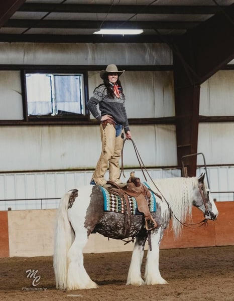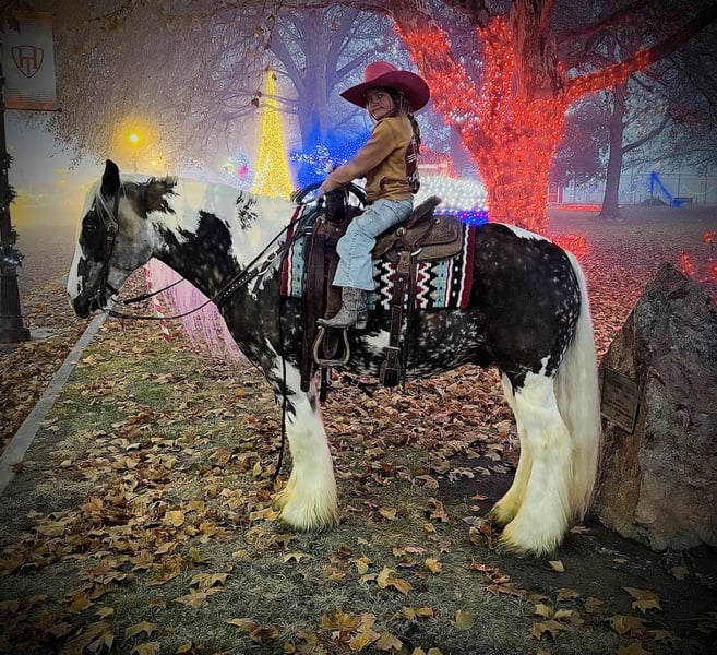 ONLINE AUCTION Place your bids at www.PlatinumEquineAuction.com Starting Bid $3500 Auction ends March 23rd, 2025 Need a new saddle? Check out White Rock Saddles on our website or Facebook! ASHL Deuteronomous Cupid is a registered, 2020 model, Gypsy Vanner, Gelding, that is standing around 15HH and he is a RARE Silver Dapple Paint color!!! Cupid just like his name would suggest he will steal your heart. I’ve been blessed to own and ride some incredible Gypsy’s and Cupid is definitely at the top of the list. He is amazing! Calm, cool customer in any situation who absolutely adores the attention you give him. His heart will melt yours with his kind disposition. Cupid is broke the very best whether you’re in the arena out on the ranch or riding down Main Street he’s done it and will please. Cupid handles around like a broke horse should he’s soft in his face and sides without being overreactive or jumpy. He’s EASY and uncomplicated with a good neck rein, stops on a dime, and will turn around nicely. Will side pass both ways and pick up his leads from a standstill. His lope is smooth to ride all day. He will collect and has been under English tack as well. Cupid is trained to lay down with a tap on the shoulder he’s very simple to cue and our kids love to lay him down for mounting and dismounting. He is 1000% safe and honest. From little kids to great grandpa everyone can ride him no matter what the task is. This is the kindest horses you will ever meet. Cupid will make you smile every day you own him and is definitely a family favorite of ours. Located in Wickenburg, AZ. For more info contact J Arrow Livestock Jerry 208-550-0992. ONLINE AUCTION Place your bids at www.PlatinumEquineAuction.com Starting Bid $3500 Auction ends March 23rd, 2025 Need a new saddle? Check out White Rock Saddles on our website or Facebook!