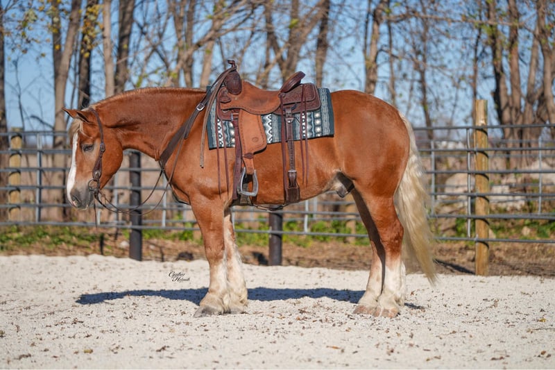🎲𝓽𝓱𝓮 𝐑𝐈𝐃𝐄𝐑'𝐒 𝓒𝓱𝓸𝓲𝓬𝓮🎲 Happening now thru MONDAY | NOVEMBER 17th - Available EXCLUSIVELY on HorseBid's website! For more details and to register visit: www.Horsebid.com CONSIGNOR CONTACT: Platinum Star Stables 260-977-9095 LOCATION: Independence, Iowa BREED: Draft Cross REGISTERED: No REGISTERED NAME: Patrick COLOR: Palomino HEIGHT: 15.2 AGE: 5 GENDER: Gelding If you have been looking for the PERFECT addition to your stable then you have found the right horse! Patrick is a stocky built, 15.2hh, 5 year old, Draftcross, gelding with movie star good looks, muscles upon muscles and a heart of gold! What color is he? We aren't sure either, he is what some folks call a dark palomino while others call him a golden sorrel... either way he shines and sparkles in the sunlight and he is as flashy as the day is long! Patrick has completed our program with flying colors! Everything that we have asked him to do, Patrick has done with ease and training him has effortless as he is totally agreeable to do whatever that is asked of him. Patrick is trained to lay down on cue and he likes to show off his talents. He is a horse that is very laid back and a horse that will build his riders confidence levels. Patrick is safe for the whole family to ride from the little kids to the eldest granny, anyone can have an enjoyable ride on this guy. No shocker that with a horse this gentle, he is everyone's best friend and loves any type of attention, especially grooming. Patrick has a smooth trot, takes his leads and will lope nice circles. He neckreins around, has a good stop, sidepasses to open/shut gates, moves off of leg pressure and backs with ease. He rides well indoor or anywhere outdoor. Not only does he go western but he goes english and will go over jumps. He holds steady coming into the jumps and lands balanced. Patrick has been exposed to all kinds of wildlife and he has been ridden in the mountains. Patrick is great on the trails, he picks his way through rocky terrain, crosses deep water, scales slopes with ease and walks across deadfall as well. He has also been driven down the highways under harness and is traffic safe. We have ridden him through town and he is totally safe there as well. Patrick sells with no bad habits, he has never been lame and has a clean vet exam on file. Whether he is ridden by a professional, total novice, the kids or whether you want to ride around the ranch, trails, drive, do jumps or just lay down and take a nap together… Patrick can do it all and do it all RIGHT! We are totally confident in Patrick and offer a 2-week replacement 100% satisfaction guarantee. We can assist with shipping to any state. Please call Ervin at 260-977-9095 to set up a time to come see Patrick in person or to ask any questions about him. Our line is set up for calls only so NO TEXT PLEASE!!! We look forward to working with you, God Bless!