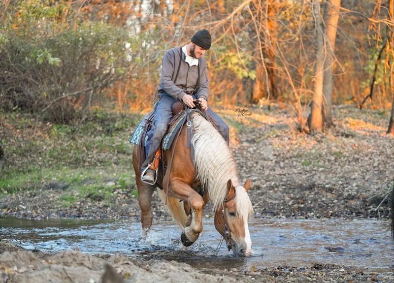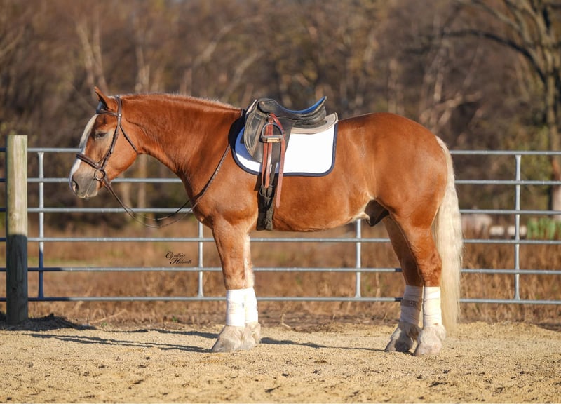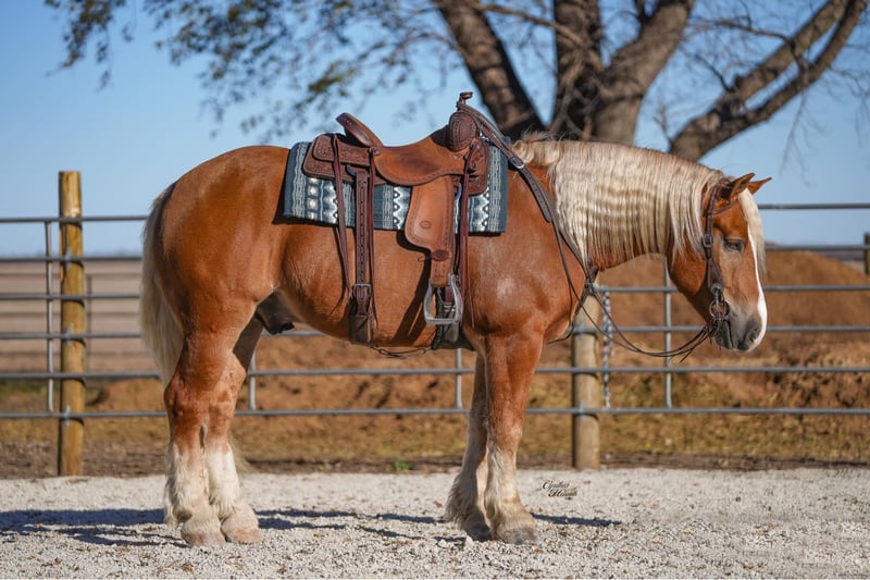 ⚜️ 𝓽𝓱𝓮 𝐇𝐨𝐫𝐬𝐞𝐦𝐚𝐧'𝐬 𝓢𝓱𝓸𝔀𝓬𝓪𝓼𝓮⚜️ Happening now thru MONDAY | DECEMBER 1st - Available EXCLUSIVELY on HorseBid's website! For more details and to register visit: www.Horsebid.com CONSIGNOR CONTACT: Platinum Star Stables 260-977-9095 LOCATION: Independence, Iowa BREED: Draft Cross REGISTERED: No REGISTERED NAME: Patrick COLOR: Palomino HEIGHT: 15.2 AGE: 5 GENDER: Gelding If you have been looking for the PERFECT addition to your stable then you have found the right horse! Patrick is a stocky built, 15.2hh, 5 year old, Draftcross, gelding with movie star good looks, muscles upon muscles and a heart of gold! What color is he? We aren't sure either, he is what some folks call a dark palomino while others call him a golden sorrel... either way he shines and sparkles in the sunlight and he is as flashy as the day is long! Patrick has completed our program with flying colors! Everything that we have asked him to do, Patrick has done with ease and training him has effortless as he is totally agreeable to do whatever that is asked of him. Patrick is trained to lay down on cue and he likes to show off his talents. He is a horse that is very laid back and a horse that will build his riders confidence levels. Patrick is safe for the whole family to ride from the little kids to the eldest granny, anyone can have an enjoyable ride on this guy. No shocker that with a horse this gentle, he is everyone's best friend and loves any type of attention, especially grooming. Patrick has a smooth trot, takes his leads and will lope nice circles. He neckreins around, has a good stop, sidepasses to open/shut gates, moves off of leg pressure and backs with ease. He rides well indoor or anywhere outdoor. Not only does he go western but he goes english and will go over jumps. He holds steady coming into the jumps and lands balanced. Patrick has been exposed to all kinds of wildlife and he has been ridden in the mountains. Patrick is great on the trails, he picks his way through rocky terrain, crosses deep water, scales slopes with ease and walks across deadfall as well. He has also been driven down the highways under harness and is traffic safe. We have ridden him through town and he is totally safe there as well. Patrick sells with no bad habits, he has never been lame and has a clean vet exam on file. Whether he is ridden by a professional, total novice, the kids or whether you want to ride around the ranch, trails, drive, do jumps or just lay down and take a nap together… Patrick can do it all and do it all RIGHT! We are totally confident in Patrick and offer a 2-week replacement 100% satisfaction guarantee. We can assist with shipping to any state. Please call Ervin at 260-977-9095 to set up a time to come see Patrick in person or to ask any questions about him. Our line is set up for calls only so NO TEXT PLEASE!!! We look forward to working with you, God Bless!