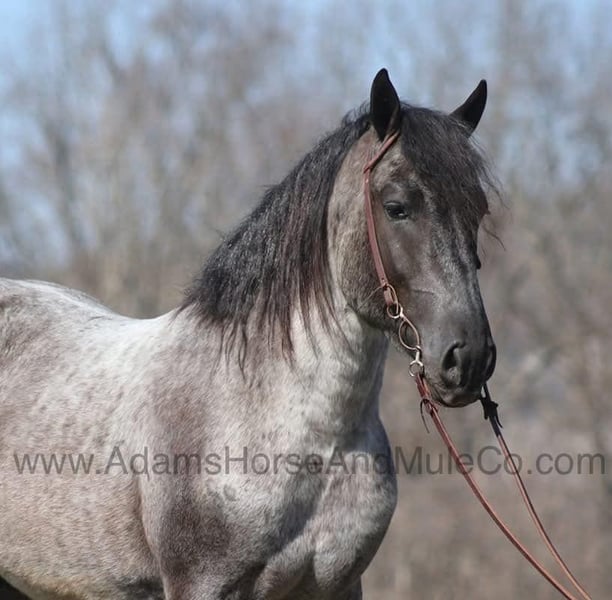 Go to visit our website for more pics and a video. AHAMC has been in the horse business and sold horses over the internet since 2005. We have a long track record of success with hundreds of happy customers. We work hard to match riders with the correct horses and specialize in beginner safe, family friendly horses that have been used and checked out by our family! We can set up transportation anywhere in the US and look forward to working with you.Ponch is an awesome looking 16.1h, True Blue Roan Draftcross gelding! He is 5 years old and is a sturdy built horse. Ponch came from the same breeding farm that a lot of our draftcrosses come from and with that farm we find the constant quiet, gentle, laid back temperment that makes them such good family safe trail horses! Ponch is no exception to that statement as he is a super quiet, gentle, laid back type of horse that is going to suit any rider and help build your confidence. Not to mention he is very friendly as well! Ponch can do a variety of things from pulling carriages, to ranch work or trail rides. Ponch has been on camping trips, been ridden in several states and has been ridden by all ages of beginners. When out on the ranch or going down the trails he will cross creeks, ditches, logs and navigate rough rocky areas. He is safe in traffic safe whether that be trucks or cars. He’s been ridden around the ranch, checked cows and rode fences. Ponch moves very smoothly, as he has a nice jog, his lope is smooth as well and he lopes nice circles on a loose rein! Ponch is blue but he will never make you blue and he is sure to be your new best friend! Feel free to call Eric 606-308-2461 with any questions! Go to visit our website for more pics and a video. AHAMC has been in the horse business and sold horses over the internet since 2005. We have a long track record of success with hundreds of happy customers. We work hard to match riders with the correct horses and specialize in beginner safe, family friendly horses that have been used and checked out by our family! We can set up transportation anywhere in the US and look forward to working with you.