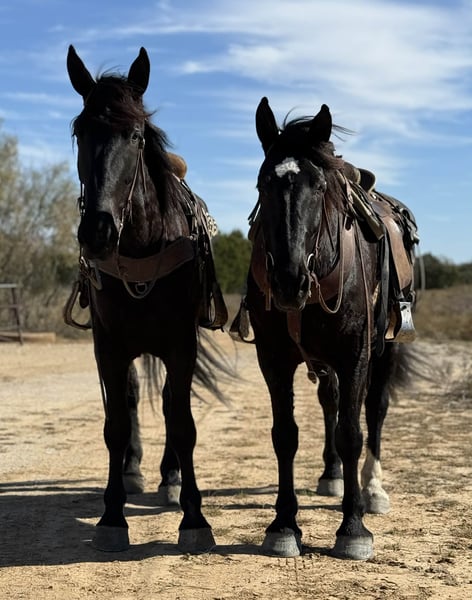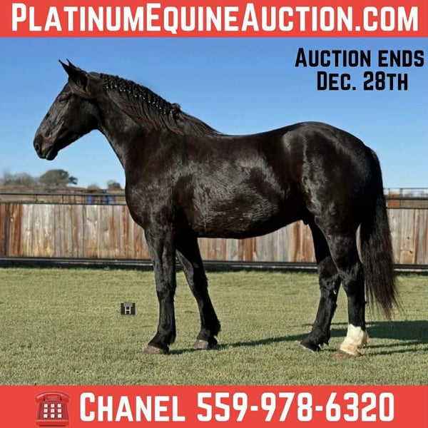ONLINE AUCTION Place your bids at www.PlatinumEquineAuction.com Starting Bid $3500 Auction ends December 28th, 2025 Need a new saddle? Check out White Rock Saddles on our website or Facebook Coal is an amazing 5 year old Percheron gelding standing 17 hands tall. Where to even start… Coal is an extremely talented, athletic, willing, kind and gentle gelding that truly does it all and does it all with a yes ma’am attitude. He jumps, drives both single and double, trail rides, and is suitable for all riders. In the arena, Coal is one of the smoothest movers I have ever ridden. He has beautiful transitions and will lope off with a simple kiss. He is started over fences and absolutely loves it! He’s one of the most natural jumpers I have ever started. Outside, Coal is happy go lucky and will go absolutely anywhere you ask. Up, down, over, or through he will do it without hesitation. Lead the pack? Yes ma’am. Follow behind? Yes ma’am. We have never experienced a negative attitude or “no” from Coal. Ever! On the ground, Coal is an absolute saint with great manners. He is friendly, easy to catch, loves attention and enjoys attention. Coal is broke to drive both single and double. He is lead horse with his half brother, Smoke, who is also available if you would like them as a team. Coal is sound, straight and clean legged. He is UTD, good for the farrier, pastures with others and stays penned up alone like a gentleman. FMI call/text Chanel with Holland Horse Company 559-978-6320. Located in Jacksboro, TX. ONLINE AUCTION Place your bids at www.PlatinumEquineAuction.com Starting Bid $3500 Auction ends December 28th, 2025 Need a new saddle? Check out White Rock Saddles on our website or Facebook