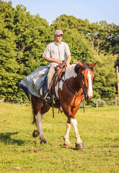 ONLINE AUCTION Place your bids at www.PlatinumEquineAuction.com Starting Bid $3500 Auction ends August 11th, 2024 Need a new saddle? Check out White Rock Saddles on our website or Facebook! Big Ben is the true definition of a gentle giant, standing at 17hh and just 4 years old! For his size, he is sure-footed walking through the woods or crossing any ditches. Big Ben will w/t/c on the correct leads in the arena. We have put him through our obstacle course, and he easily passed everything! Big Ben is traffic-safe and good with tarps, stock whips, and bridges. He will side-pass and back up with ease! We have taken him to the kid’s camp, where we teach beginners how to ride, and he does well with all ages. Big Ben will trail ride alone or in a group and go anywhere you point him. If you don’t want to ride, Big Ben also drives. He will drive down the road with cars passing by and not even lift his head. He is easy to hitch and stands quietly. Big Ben stands good for the vet, clipping, and bathes. He sells 100%sound with no vices. We welcome you to come out to the farm and try him out. Contact Dayton Wolcott 585-734-0169 for more information on Big Ben. Located in Warsaw, NY. ONLINE AUCTION Place your bids at www.PlatinumEquineAuction.com Starting Bid $3500 Auction ends August 11th, 2024 Need a new saddle? Check out White Rock Saddles on our website or Facebook!