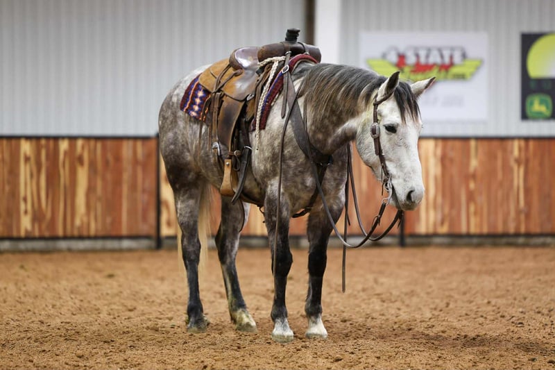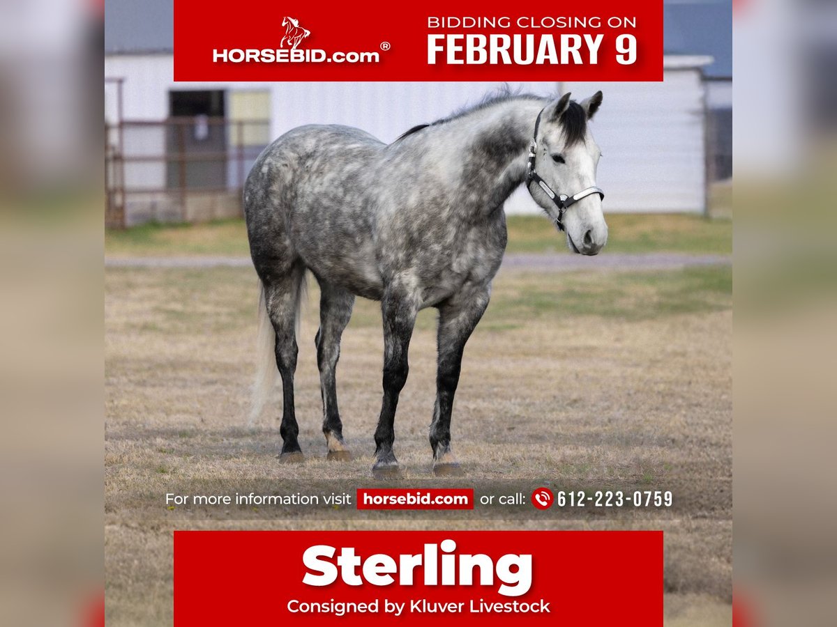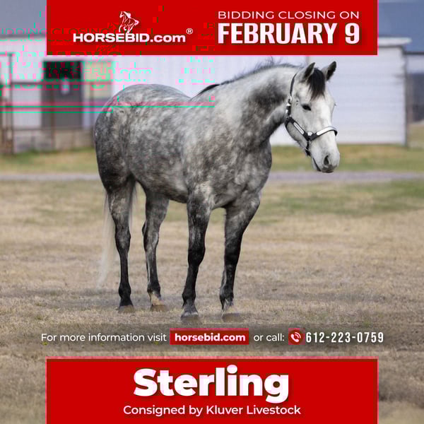 ❤️🔥𝑩𝒆 𝑴𝒊𝒏𝒆 𝐒𝐄𝐋𝐄𝐂𝐓❤️🔥 Happening now thru MONDAY | FEBRUARY 9th - Available EXCLUSIVELY on HorseBid's website! For more details and to register visit: www.Horsebid.com CONSIGNOR CONTACT: Kluver Livestock 612-223-0759 LOCATION: Ripley, OK BREED: Crossbred REGISTERED: No REGISTERED NAME: Sterling COLOR: Dapple Grey HEIGHT: 15 AGE: 7 GENDER: Gelding Sterling is a 7yr old dappled grey crossbred gelding standing at 15h. Built with shape, color great confirmation. He’s got the build and the mind to handle everything… He’s already handled it all. Sterling is a been there done that horse. He’s been used as a pickup horse many times, shagged bulls, doctord wheat cattle, used at the feed lot, roped off of regularly, trail rode many miles, rode english, and is broke. He has no buck or rear. He really has been used for it all! He rides around soft and in your hand, he also has a good stop and turnaround. He’s not spookish and handles everything we throw at him with ease. Take him for a ride through town or go doctor cattle on and he’s your guy. He is also a very pretty mover especially under an english saddle. He’s a right hand man horse.