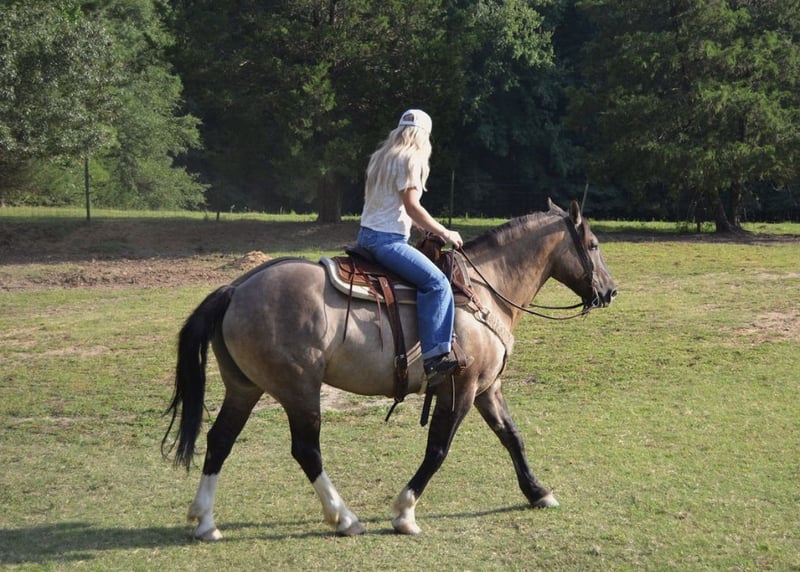 🍁𝒕𝒉𝒆 𝐅𝐀𝐋𝐋 𝑺𝒑𝒆𝒄𝒕𝒂𝒄𝒖𝒍𝒂𝒓🍁 Happening now thru MONDAY | SEPTEMBER 22nd - Available EXCLUSIVELY on HorseBid's website! For more details and to register visit: www.Horsebid.com CONSIGNOR CONTACT: Hannah Anderson 336-473-9359 LOCATION: Lexington NC BREED: Draft cross REGISTERED: No COLOR: Grulla HEIGHT: 15.3 AGE: 6 GENDER: Gelding Elmer is a 6 year old 15.3 hand percheron quarter horse cross. He is an absolute puppy dog with the sweetest demeanor. A true melt your heart personality! He rides in the arena with a solid walk trot canter.He collects himself and rides off leg pressure.He rides on a loose rein and is a very simple comfortable ride as well as picks up correct leads, stops nicely and backs up with ease. Elmer has been trail ridden through creeks, crossed logs, bridges, traffic safe, nothing phases him and he handles every situation calmly and mannerly. On the ground he is in your pocket with impeccable ground manners, respects your space and stands quietly for tacking, bathing, clipping ect. He gets along with everyone and is a pleasure to have around. He sells sound. He does require light lunging with time off.