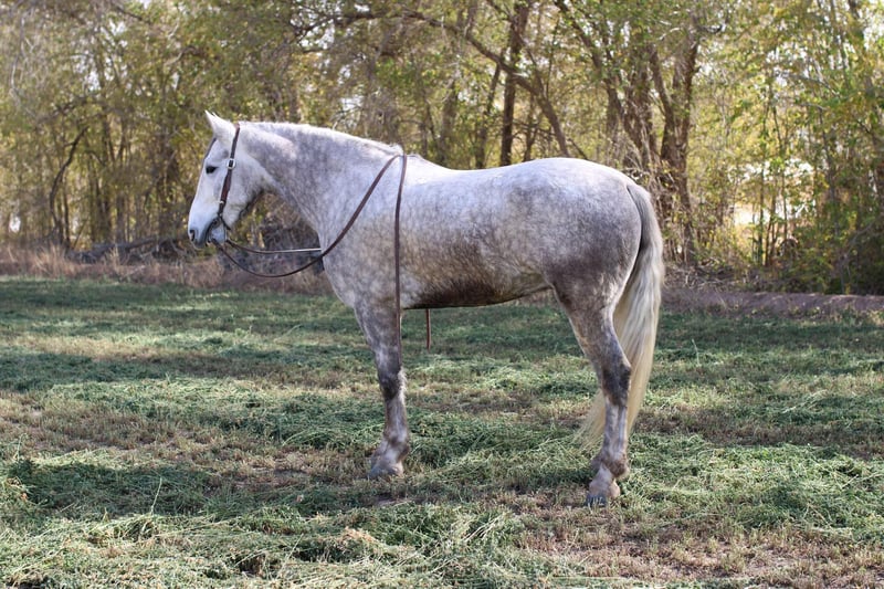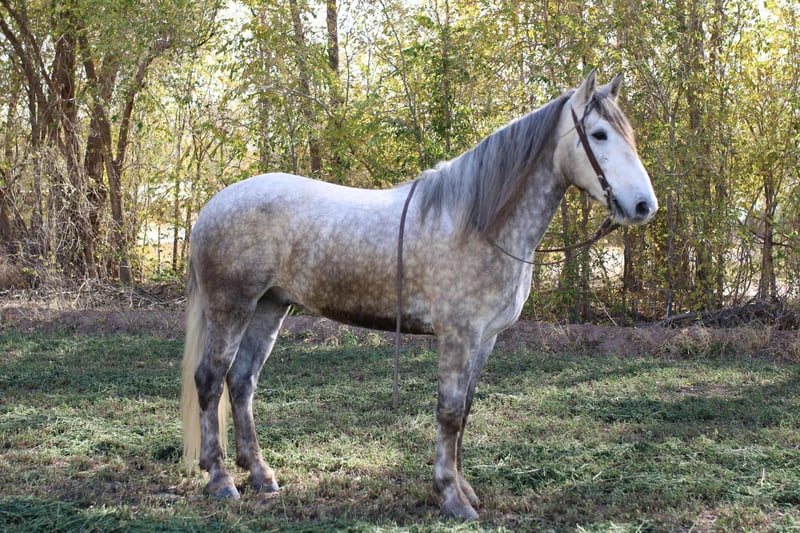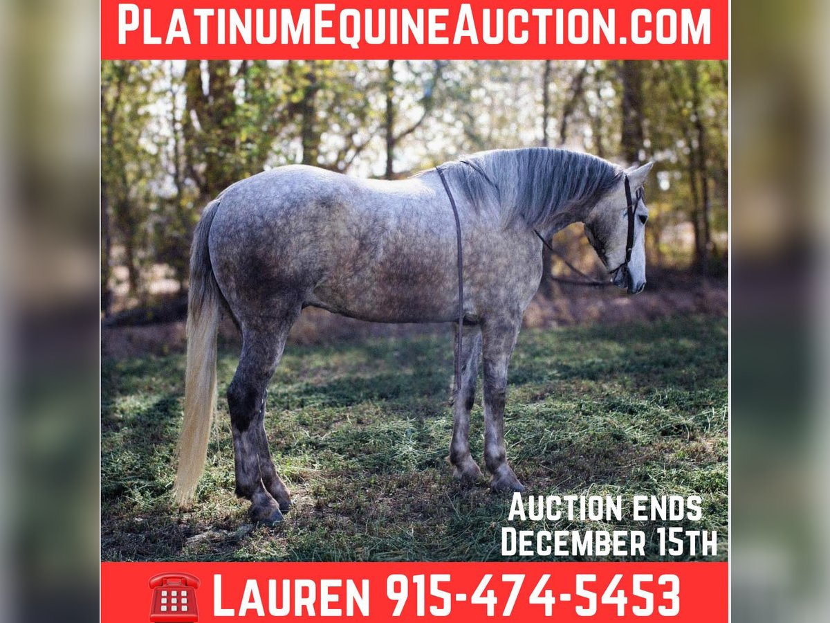 ONLINE AUCTION Place your bids at www.PlatinumEquineAuction.com Starting Bid $3500 Auction ends December 15th, 2024 Need a new saddle? Check out White Rock Saddles on our website or Facebook! Thunder is a show stopper! He will be the literal gentle giant, anyone can get along with him. He’s an absolute gentleman . Thunder is a 5 (coming 6) yr old draftcross gelding that stands 16h tall! Thunder stands nice and easy for you to mount him and he will stand for you to mount him off a stool if you need a boost. Once you’re mounted he’s all business. He’s super fun to ride he’s a solid horse. We use him in all aspects of ranch work from checking on cattle and gathering in rough country to roping steers in the arena. Thunder is a solid head horse he’s good in the box and is strong to the horn. I believe he would make a great pick up horse in the rodeos or even cooler a police horse! Thunder will travel out like a little horse, he has a great handle, he lopes pretty circles he knows his leads and will stop at woah! He’s very confident where ever you point him he’s committed and will go as asked. We also just have fun on him and cruise down the road nothing bothers him. He’s safe for his size he’s just a big pup that wants to be your friend. He’s easy to catch, shoe, saddle, bathe, load, haul and will stand to be mounted. Thunder has lived up to every aspect of his name, he is a BIG, PRETTY SHOWSTOPPER! Contact Lauren Lara 915-474-5453 with any questions. Located in El Paso, TX. ONLINE AUCTION Place your bids at www.PlatinumEquineAuction.com Starting Bid $3500 Auction ends December 15th, 2024 Need a new saddle? Check out White Rock Saddles on our website or Facebook!