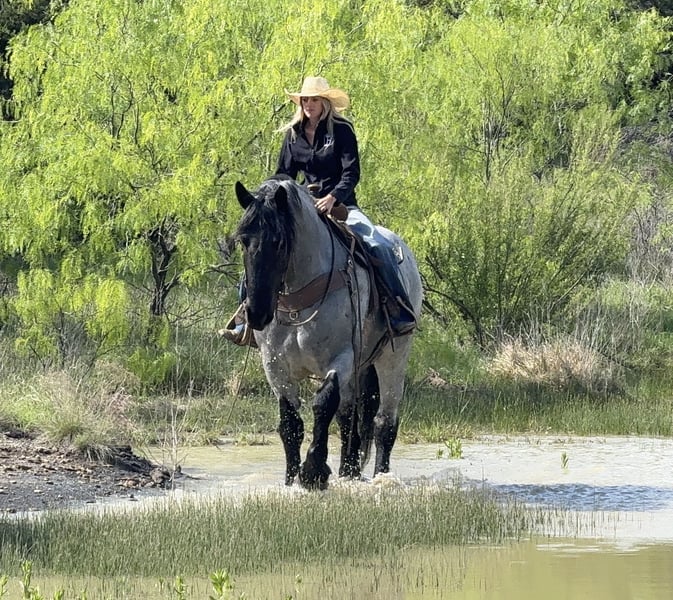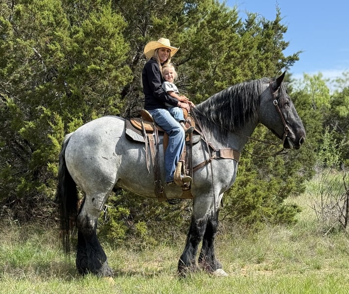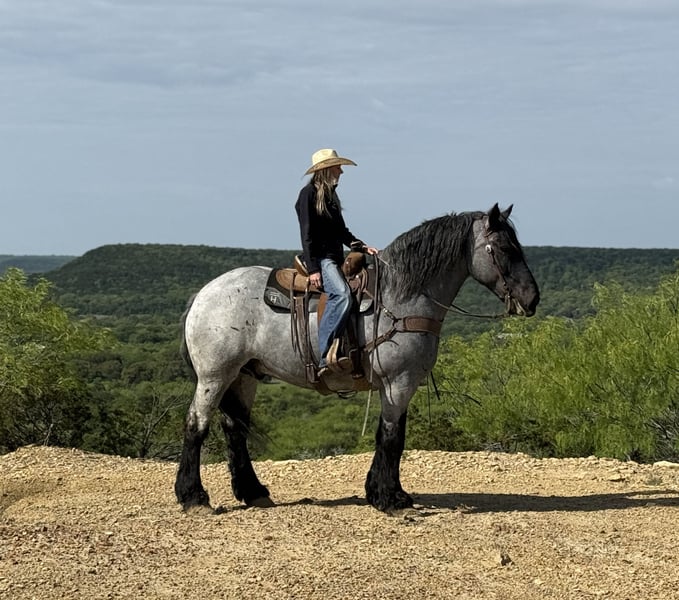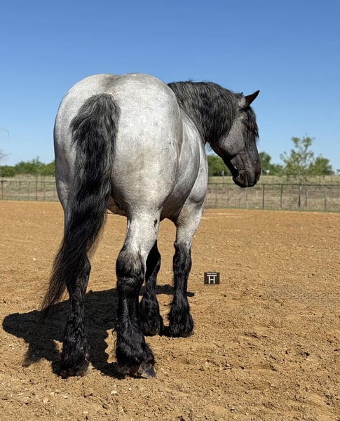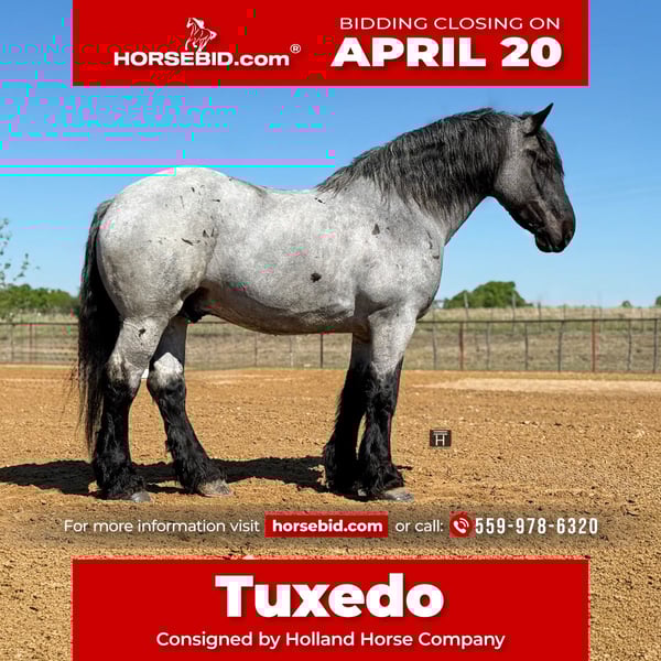 ⚜️𝐭𝐡𝐞 𝓔𝓵𝓲𝓽𝓮 𝐒𝐩𝐫𝐢𝐧𝐠 𝐂𝐥𝐚𝐬𝐬𝐢𝐜⚜️ Happening now thru MONDAY | APRIL 20th - Available EXCLUSIVELY on HorseBid's website! For more details and to register visit: www.Horsebid.com CONSIGNOR CONTACT: Holland Horse Company 559-978-6320 LOCATION: Weatherford, TX BREED: Draft Cross REGISTERED: No REGISTERED NAME: Tuxedo COLOR: Blue Roan HEIGHT: 17 AGE: 7 GENDER: Gelding Tuxedo is a stunning 7-year-old gelding standing 17 hands tall and weighing 1,740 lbs. He is the perfect combination of size, muscle, and build, paired with an incredibly smooth and enjoyable ride. Gentle, safe, and dependable, Tuxedo is the kind of horse that makes every ride relaxing and fun. He is exceptionally versatile—riding English, Western, bareback, and driving both single and double with ease. Tuxedo has been trail ridden extensively, ridden down roads and through town, and used to gather cattle. He is level-headed, confident, and as simple as they come—just saddle up and go. He rides on a loose rein, trots off with a click, lopes with a kiss, and stops on “whoa.” We’ve also started Tuxedo over fences, and he’s proven to be brave, willing, and consistent. He has never refused a jump and genuinely seems to enjoy it. In the arena, Tuxedo offers soft, beautiful circles and smooth transitions. Outside, he will go absolutely anywhere—through water, over obstacles, and across any terrain you point him at. He’s happy to go out alone or in a group and always behaves like a true gentleman. Tuxedo has zero buck or nonsense. He has excellent ground manners—stands tied, loads and hauls well, is good for the farrier, and respects personal space. He’s friendly and personable, always the first to meet you at the gate, and has a willing, eager attitude every time you ride. He is sound, straight, and clean-legged with strong, healthy feet. Tuxedo is up to date on all care and does well both stalled or turned out with others. This is a truly exceptional gelding that you have to see and ride to fully appreciate. For more information, contact Chanel at Holland Horse Company: 559-978-6320 (call or text). Hauling options available.