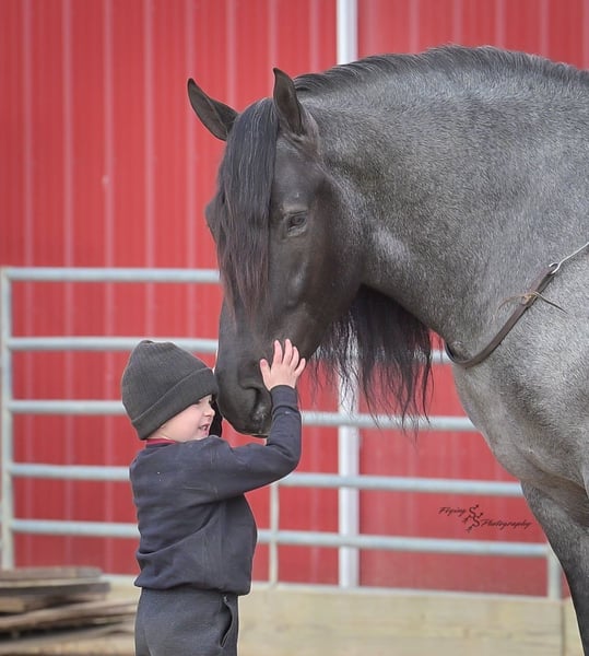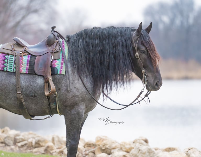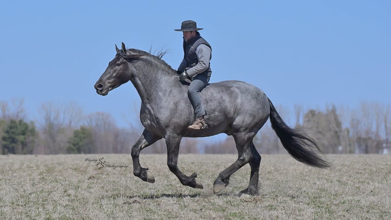 ONLINE AUCTION Place your bids at www.PlatinumEquineAuction.com Starting Bid $3500 Auction ends June 22nd, 2025 Need a new saddle? Check out White Rock Saddles on our website or Facebook! Every once in a blue moon, you come across a horse that stands above all the rest. I’m proud to offer you the once in a lifetime opportunity of owning one of the best horses I’ve ever had the privilege to own and train, Blue Moon. Blue Moon, or Blue as we often call him, is a 6 year old blue roan draft gelding that stands 16.1 hands. You will search many years before you will come across a horse who is as versatile as Blue is. He rides english, western, bareback, bridleless, liberty, and drives. Many say that their horse is a “once in a lifetime” horse, but Blue is the real deal. He is a standout, exemplary individual. Blue is broke enough for any level rider, as well as riders of any age. He has training that advanced riders will love, yet he is honest enough to take care of beginner riders. Blue is the literal go to horse in my barn for every person in my family. Everyone enjoys riding him and loves his disposition. Blue has been rode by all ages of riders, and has performed remarkably well with each individual. We are not afraid to turn the kids loose with him! My 4 year old nephew can confidently lead Blue around with his little sister in the saddle, and can ride Blue by himself without problem. My older nieces (8-12 years old) have loved taking him out on the trails and have gained so much experience in the saddle with him. I have owned Blue for one year, and have genuinely enjoyed the time I have spent training him. Blue is as gentle as he is versatile. He will excel in any direction he is taken. Blue is comfortable with the kids playing and dogs rough housing around him. He is used to all types of noises and machinery, from lawn mowers to semis, Blue has seen it all. He has been used around all types of farm equipment as well. He is happy to be hitched double or single to a carriage, and is a huge help when training other horses to drive. Blue is comfortable with a tarp, crosses logs and bridges, isn’t bothered by the crack of a bull whip, and entertains all of the shenanigans that we get into when playing with the little kids. Even after extended time off, you can bring him out of the stall or pasture, saddle him up and ride off without any problems. Blue stalls well, gets along well with other horses in the pasture, is easy to catch, and is an all around pleasure to spend time with. He is used to small pets, wildlife, as well as other small and large livestock. He will stand to be groomed and tacked with or without cross ties. He also side passes to the fence or mounting block to be mounted. For his size, he is very athletic and carries himself exceptionally. He is great in the arena, on the trail, in town amongst traffic, and anywhere else you could think of taking him. Blue correctly picks up his leads on cue, pivots, would side pass across a football field, has a nice extended trot, and lopes gorgeous circles. Blue is the horse I would trust anyone with, he is absolutely safe. Whether you want to trail ride through the rocky mountains, perform in the english show pen, or hitch him to a carriage in New York City, Blue is fully capable of doing it all. This gelding has a habit of exceeding all of your expectations, and could be considered the 8th Wonder of the World! There are few horses who you can truthfully turn loose with anyone, even fewer who can perform in so many disciplines, excelling in each. It seems like no matter how many great things are said, we barely scrape the surface of describing Blue. The way he looks is only the cherry on top! Blue is the definition of majestic with his eye-catching roan color, big round hip, kind eye, and overall balanced conformation. As if all of that is not enough, he has a mane and tail that Rapunzel would be jealous of. There are an endless amount of things to say about his training, his good nature, and how much I think of him. Blue is great for the veterinarian and farrier. He wears a #5 shoe on the fronts and a #4 shoe on the rears, and has good feet. Blue has a pre-purchase exam on file. If interested potential buyers would like to have radiographs, I am happy to assist in that. He is current on coggins. Blue is eligible to be registered in the IDSHR. If the buyer would like to have him registered, I would be glad to cover that expense and assist in registering him. I want Blue to have an amazing home, where he and his new owner work well together. To insure this, Blue will sell with a 30 day 100% satisfaction guarantee. I am confident that you will love Blue Moon as much as we have the past year. We are located in Fairbank, IA. If you have any questions, or would like to meet Blue prior to the auction ending, please call Edwin Raber 319-283-0616. I could write a book about this amazing gelding, so I urge you to call with any inquiries. I will be happy to talk with you more about my best bud, Blue Moon. ONLINE AUCTION Place your bids at www.PlatinumEquineAuction.com Starting Bid $3500 Auction ends June 22nd, 2025 Need a new saddle? Check out White Rock Saddles on our website or Facebook!