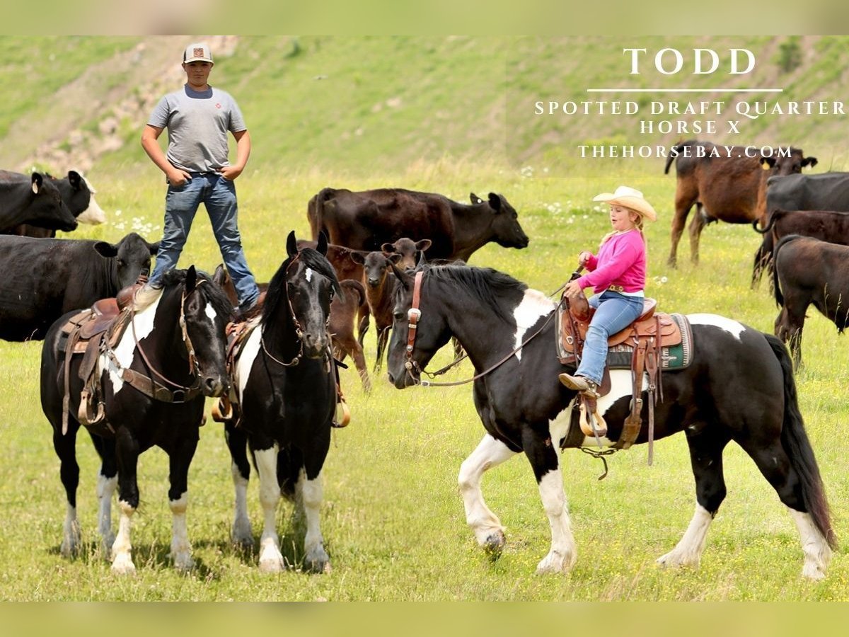 Todd and Tucker are a dynamic duo that you sure do not run across every day! These boys are so very special! They are Spotted Draft Horse/Quarter Horse crossbreds and are full brothers. Todd is 8 years old, and Tucker is 9. They were raised by some good Amish friends of ours until we purchased them a year and a half ago. These two have extensive experience in almost everything you could imagine. From being phenomenal driving horses, to having the smoothest one-step lope, to being one of the best hands around the ranch, to even being trick horses, Todd and Tucker are truly the best team of horses we have ever owned. They are 100 percent safe, sound, skilled, and experienced horses with the sweetest, most pleasant, and willing-to-please attitude. As Spotted Draft Horse/ Quarter Horse crossbreds, Todd and Tucker have all of the best qualities of each breed. Their size, color, build, and disposition come from the draft side of them, with their agility, intelligence, and versatility being attributed to the quarter horse in them. Todd and Tucker stand 16 hands and are built wonderfully- they have big feet and bones and are thickly made with a great conformation. On the ground, Todd and Tucker are complete gentlemen. Our little girl who is only 8 can handle either or both of them together with ease, confidently. Even with their size, she knows she can trust them. They are respectful of your space, they stand tied patiently, stand in the wagon patiently, and with the extensive liberty work they’ve had, they will even follow you around at the command to come. In the saddle, these boys are a dream ride. They both have a one-hand neck rein, have a super smooth one-step lope, a big stop, and will back up and turn around in a circle like a quarter horse. They take their correct leads both ways and respond to leg pressure. They are completely experienced in both indoor and outdoor arenas. We’ve also ridden them on countless miles of trails. It doesn’t matter what type of terrain or what kind of challenge they face- they will take you where you want to go. Our entire family has enjoyed trail riding with these guys! From mud to rocks to sliding over steep hills to deep water- they’ve done it all! They are safe and sure-footed, getting you where you need to go. Todd and Tucker are also amazing driving horses. I could not count the miles they have both driven and worked together as a team. They know their job, do it well, and look AMAZING while doing it. They are very classy and move with elegance. They sure do turn heads! They are also completely traffic-safe. We’ve driven them to town, to and through our cattle farm that’s up the road, in parades, and even used them in a live drive-thru nativity scene to give people wagon rides! From the tiniest babies to the oldest grandpas, Todd and Tucker safely gave them rides in the wagon! They are surely a trusted team! Todd and Tucker are also trick horses. They have both been trained to lie down and sit up! They are both super intelligent animals. They will also side-pass to a mounting block or any other mounting point you choose. These brothers have also been a huge help around the farm. We have used them to rope wild cattle, move, check, and sort cattle, and check fences almost daily. We’ve even taken them to a large-scale cattle roundup, where they helped catch, sort, and work over 300 head of cattle in a couple of days! They are also very useful for opening and closing gates, dragging items around, and moving fences or gates as needed. Our Amish friends also used them to feed hay and run equipment. We’ve seen his 3-4-year-old son drive Tucker with a roll of hay on the wagon while his father opened and closed the gate for him. Todd and Tucker are also very familiar with the tarp, whip, and gun. They’ve seen it all many, many times and pay it no mind at all. They’re both great at loading and hauling, love a bath, and stand well for the farrier. They get along well with each other and other horses. They are super friendly to everyone they meet. Each time we take them out in a crowd, countless people come to pet them. They enjoy the love! They perform well in the stall and in the pasture. They are easy to catch and will respond every time you call. They are also great with pets and livestock, including dogs, cats, and goats that run in and around the barn with them. Both of these horses are truly safe, gentle, and easy to get along with. They aren’t exactly the same, but with the wonderful training they’ve had, they are pretty close! Aside from minor differences in appearance, the only difference between these two is that Todd is laid back, and Tucker is extremely laid back. Tucker is slightly lazier than Todd, whereas Todd is slightly quicker to respond. Honestly, that’s the only difference. Our entire family has ridden and enjoyed both of these boys, even our little girl. She has even set up jumps and jumped them! They are such well-trained, versatile animals that are up for whatever task you ask of them! Their potential is unlimited! They could excel in the western, english or driving world! We are offering Todd and Tucker for purchase separately or as a team. There will be 2 separate auctions, one for Tucker and one for Todd. If you wish to purchase them as a team, make sure to win the bid on each auction! Please feel free to call or text us anytime! We would love to chat with you about these boys or set up a time for you to come and visit them! We can also arrange shipping anywhere in the US. Take the time to watch our full YouTube video to get a glimpse of what life is like with Todd and Tucker.