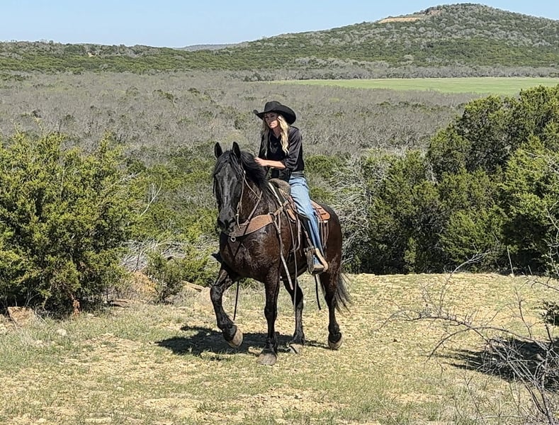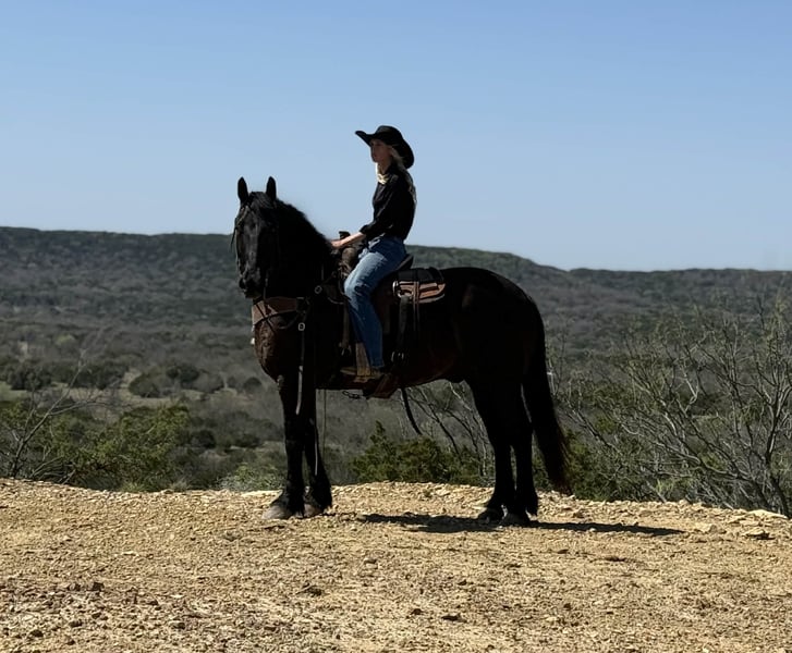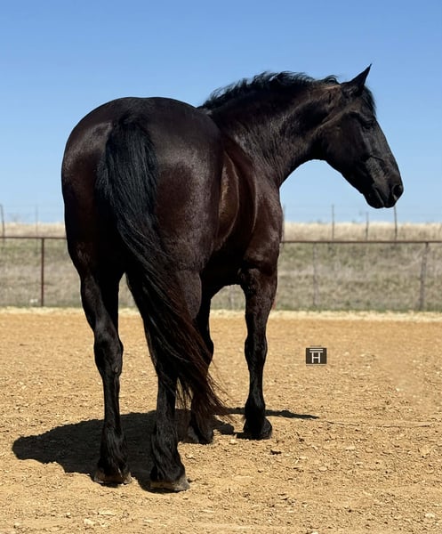 "AVAILABLE ON ONLINE HORSE AUCTION AT www DOT PlatinumEquineAuction DOT com BIDDING OPEN NOW thru SUNDAY | APRIL 5TH! *Final price will be determined on auction site* CONSIGNOR CONTACT INFO: Holland Horse Company 559-978-6320 LOCATION: Weatherford, TX Brick is a stout, well-built 9-year-old Draft Cross gelding with the kind of experience and temperament everyone is looking for. Standing 15.3 hands and weighing approximately 1500 pounds, he’s the perfect combination of size, strength, and rideability. This is a true “been there, done that” horse. Brick has logged countless miles on the trails and has been used extensively on the ranch. He will run to and pull absolutely anything. He’s equally comfortable in the arena, riding both English and Western. Nothing phases him—he’s been exposed to roads, traffic, dogs, goats, ATVs, tractors, and more. Brick is also exceptionally well broke to drive, both single and double. He has a kind, gentle nature and excellent manners. There is absolutely no buck, bolt, or silliness to him. He’s well-trained, moves easily off leg, neck reins, and carries himself with natural collection. Ask him to lope with a simple kiss and he steps right into it. He’s forward-moving yet light and responsive, with smooth, comfortable gaits from a ground-covering walk to an easy jog. When it comes to work, Brick shines. He will pull anything you hook to him and truly enjoys working hard. He’s the type that will go all day with the same willing attitude and perky eared demeanor. Brick is also versatile and athletic—we’ve started him over fences, and he’s taken to it naturally. He’s bold, confident, and not easily intimidated, making him a great prospect for fox hunting or other performance disciplines. So far, we haven’t found anything that spooks him. He is sound, healthy, straight, and clean-legged. He is the perfect size with tons of mass and not too tall to easily mount. He gets along well with other horses, stands well for the farrier, and is easy to haul and tie. For more information, contact Chanel with Holland Horse Company at 559-978-6320 (call or text). Shipping can be arranged nationwide. We are located in Weatherfod, Texas.
